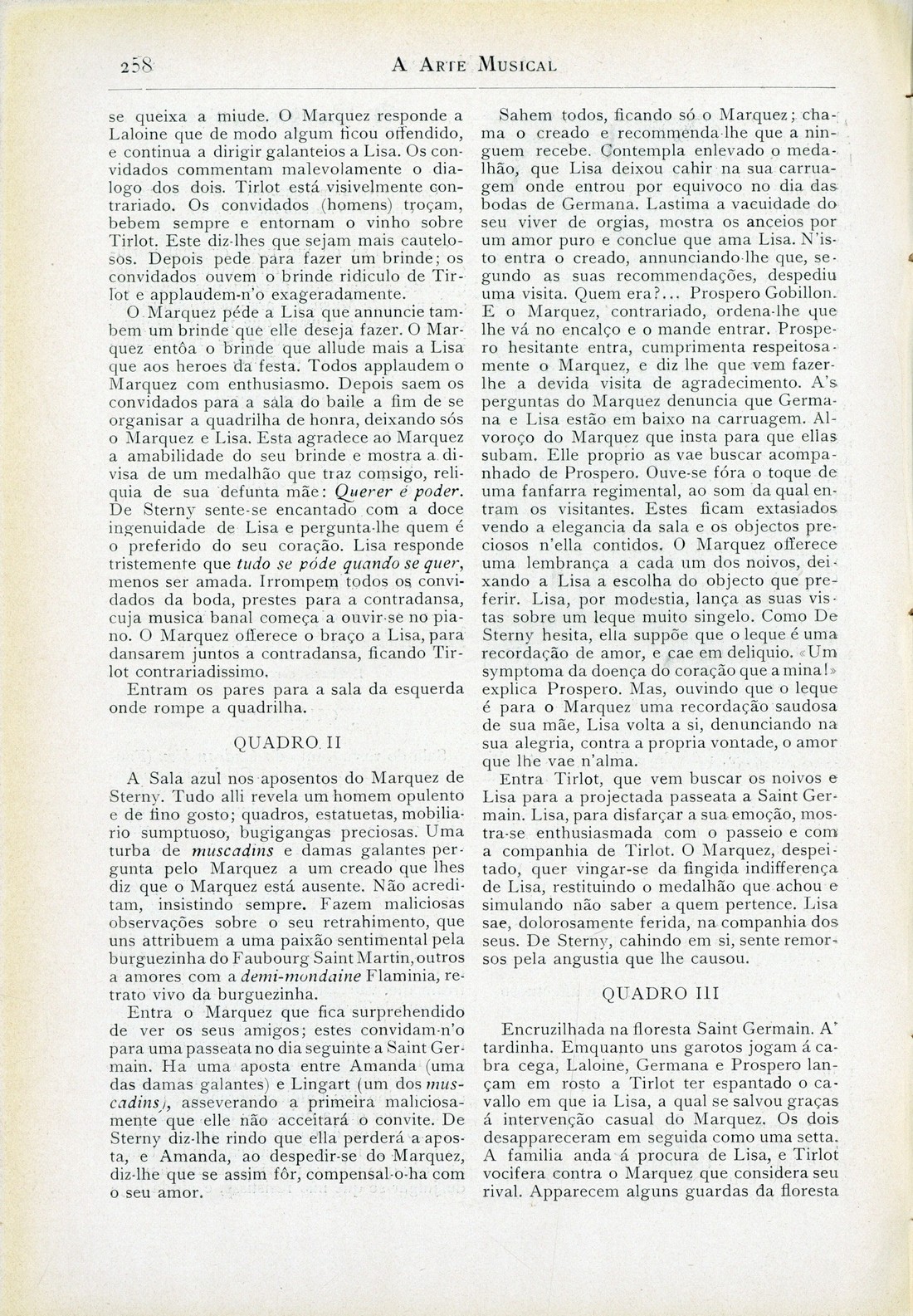 A arte musical : revista publicada quinzenalmente Ano 10, N.º 241, 31 de Dezembro de 1908 capa verso publicidade publicidade Edmond Membrée Notas vagas : cartas a uma Senhora, por Affonso Vargas Concertos, por Ri-Mal; Concurso de Música Portugueza Theatro da Trindade ; Noticiário Necrologia ; Mais um anno publicidade publicidade verso contracapa | Ano 10, N.º 241, 31 de Dezembro de 1908 > A Burguesinha > 0258 |