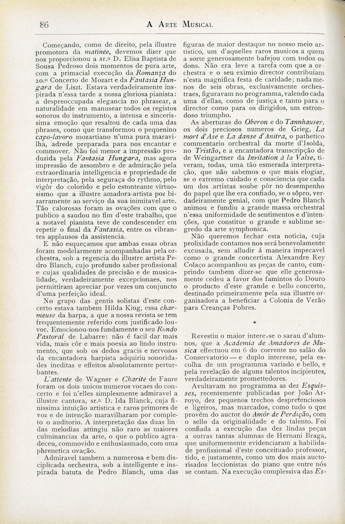 A arte musical : revista publicada quinzenalmente Ano 11, N.º 246, 15 de Março de 1909 capa verso publicidade publicidade J. Joachim Nin Theatro de S. Carlos, por Esteves Lisboa Notas vagas : cartas a uma Senhora, por Affonso Vargas Necrologia ; Caixa de Soccorro a Músicos Pobres por iniciativa da Arte Musical publicidade publicidade publicidade verso contracapa | Ano 11, N.º 246, 15 de Março de 1909 > Concertos > 0086 |