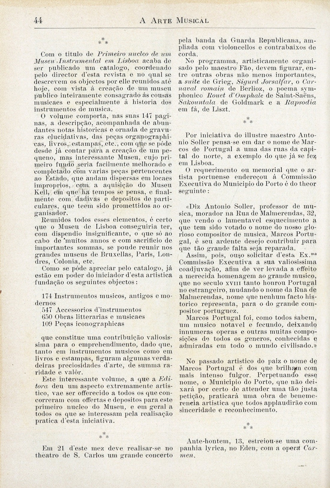 A arte musical : revista publicada quinzenalmente Ano 17, N.º 390, 15 de Março de 1915 Pela Índia (cont.) Curiosidades musicaes. 2.ª série, por Brito Rebello Carta do Porto, por Ernesto Maia Meio século de música, por Michel'Angelo Lambertini | Ano 17, N.º 390, 15 de Março de 1915 > Noticiário > 0044 |