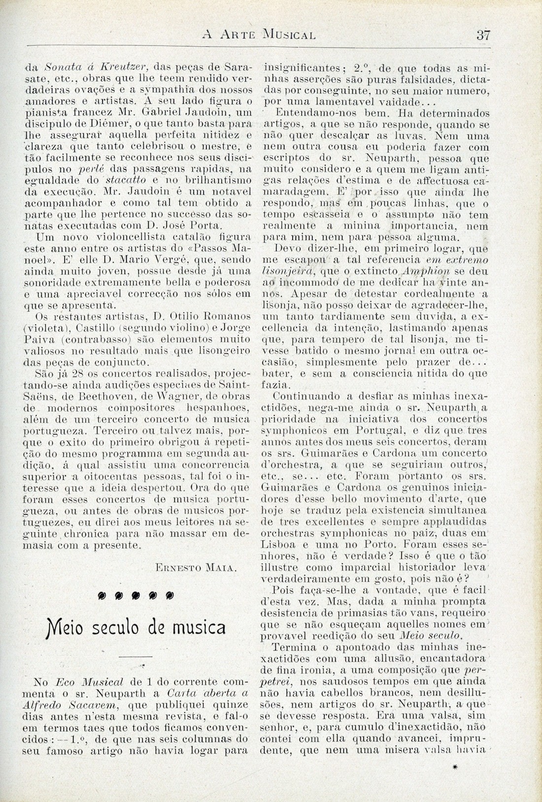 A arte musical : revista publicada quinzenalmente Ano 17, N.º 390, 15 de Março de 1915 Pela Índia (cont.) Curiosidades musicaes. 2.ª série, por Brito Rebello Carta do Porto, por Ernesto Maia Meio século de música, por Michel'Angelo Lambertini | Ano 17, N.º 390, 15 de Março de 1915 > Meio século de música, por Michel'Angelo Lambertini > 0037 |