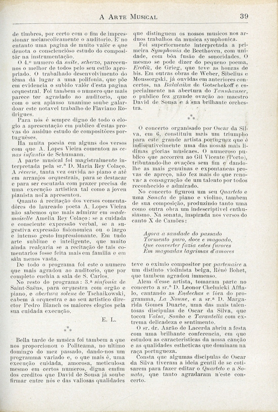 A arte musical : revista publicada quinzenalmente Ano 17, N.º 390, 15 de Março de 1915 Pela Índia (cont.) Curiosidades musicaes. 2.ª série, por Brito Rebello Carta do Porto, por Ernesto Maia Meio século de música, por Michel'Angelo Lambertini | Ano 17, N.º 390, 15 de Março de 1915 > Concertos > 0039 |