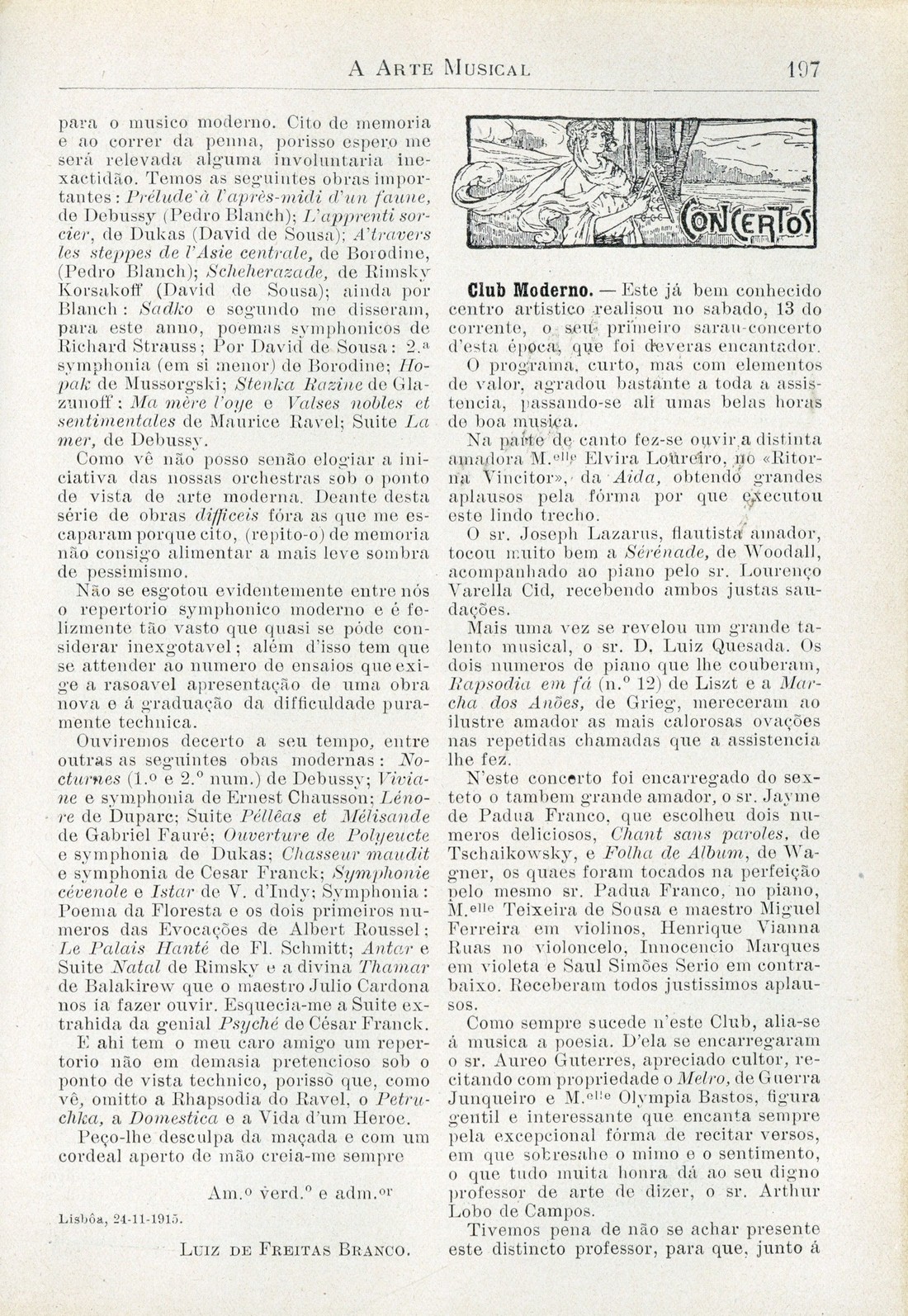 Ano 17, N.º 407, 30 de Novembro de 1915 > Concertos > 0197