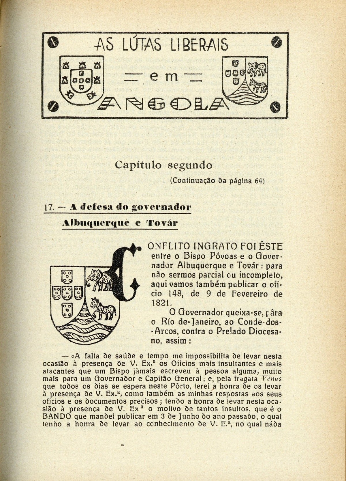 III série, n.º 3, 1935capa verso Os holandeses em Angola (1641-1648) [cont.] As lútas liberais em Angola [cont.] História geral das Guerras Angolanas, por António de Oliveira de Cadornega História Eclesiástica de AngolaBiblioteca da Academia das Ciências : memórias do Convento de S. José de Angola, por Vicente Salgado [cont.] Miscelânea de apontamentos velhos e antigos-impressões, comentários, crítica-nótas à margem & novidades | III série, n.º 3, 1935 > As lútas liberais em Angola [cont.] > 0077 Tipo:image/jpeg Tamanho:647 KB |