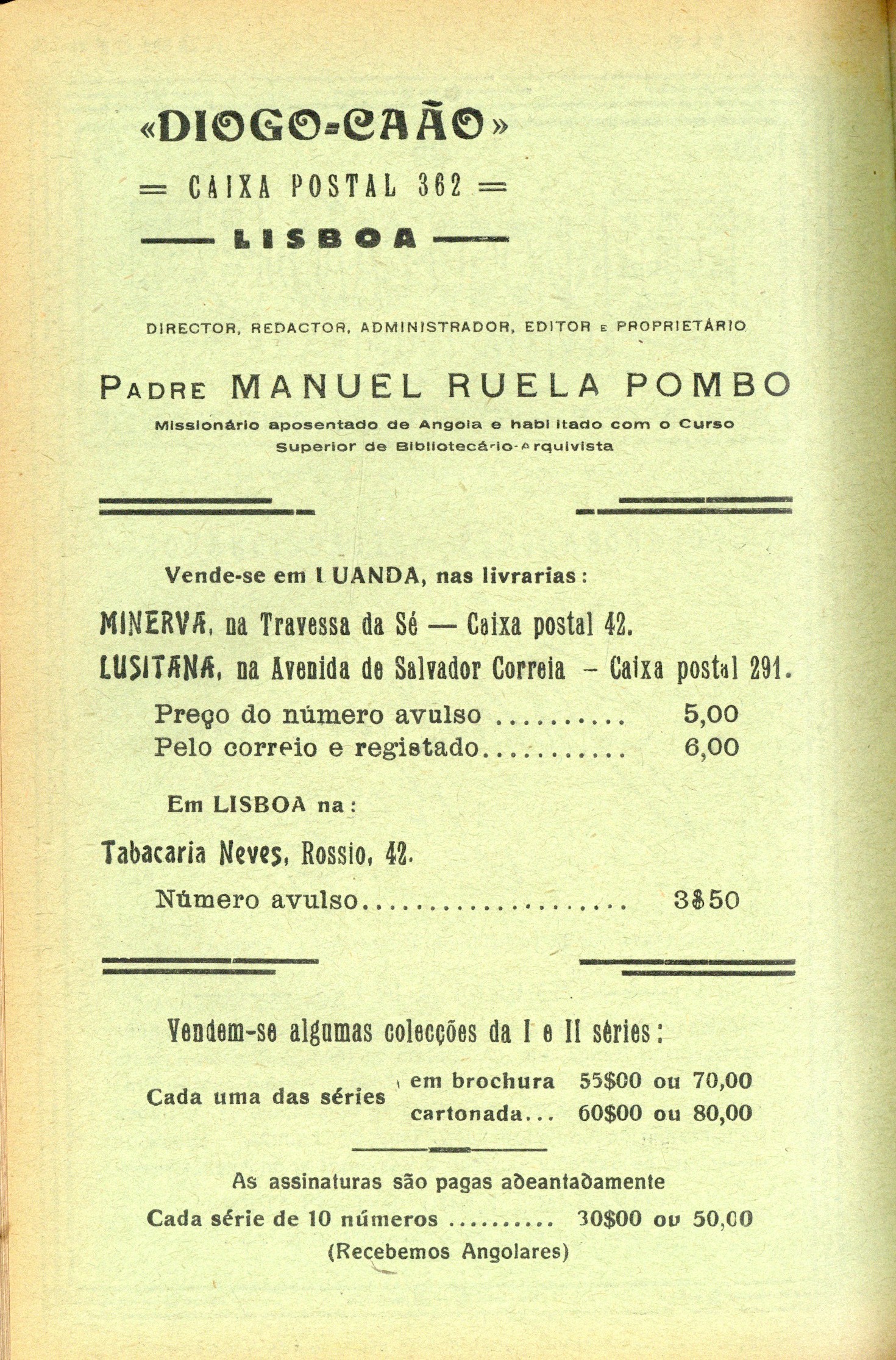 III série, n.º 3, 1935capa verso Os holandeses em Angola (1641-1648) [cont.] As lútas liberais em Angola [cont.] História geral das Guerras Angolanas, por António de Oliveira de Cadornega História Eclesiástica de AngolaBiblioteca da Academia das Ciências : memórias do Convento de S. José de Angola, por Vicente Salgado [cont.] Miscelânea de apontamentos velhos e antigos-impressões, comentários, crítica-nótas à margem & novidades | III série, n.º 3, 1935 > verso Tipo:image/jpeg Tamanho:1 MB |