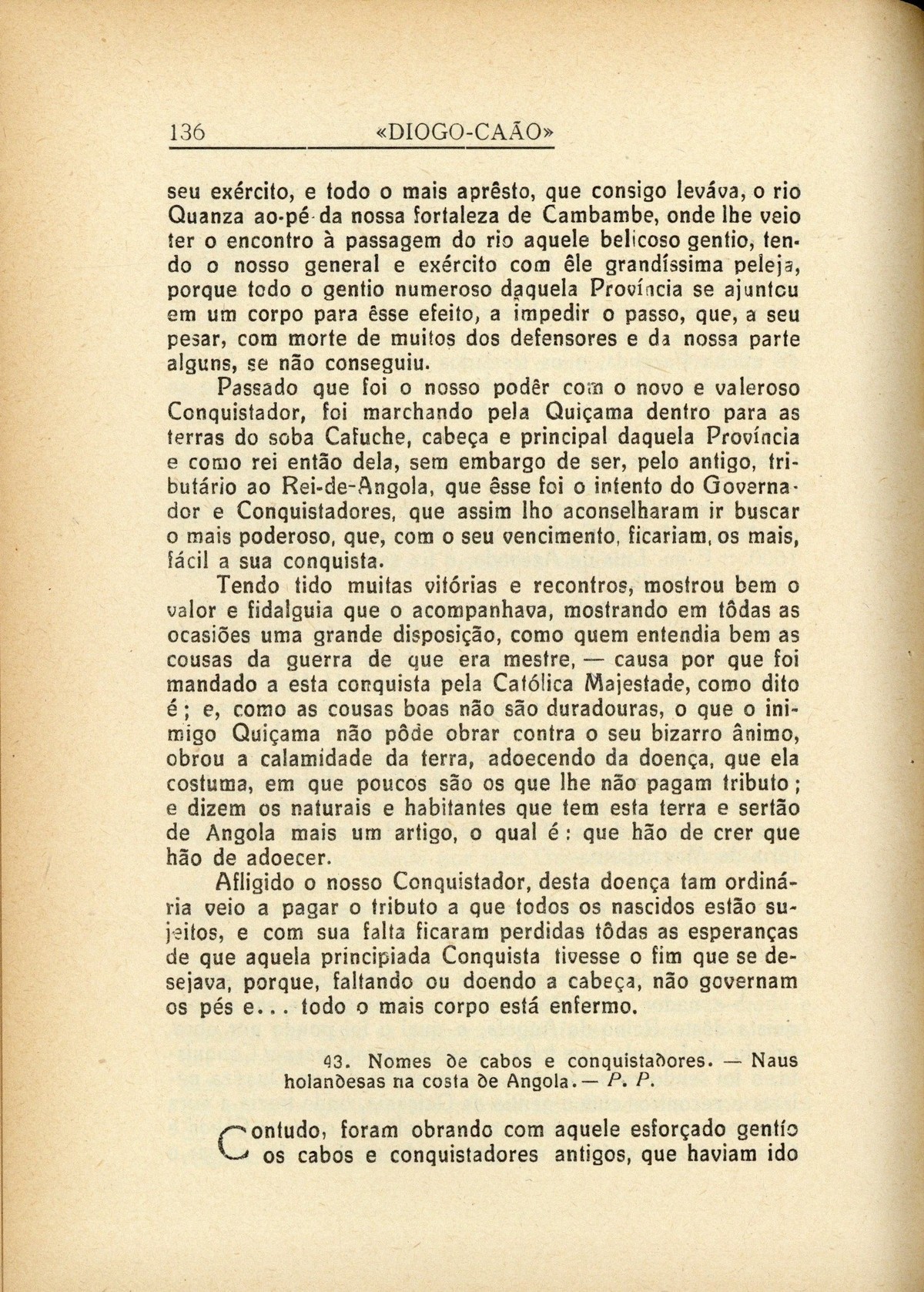 III série, n.º 5, 1935capa verso As lútas liberais em Angola [cont.] História geral das Guerras Angolanas, por António de Oliveira Cadornega História Eclesiástica de AngolaBiblioteca da Academia das Ciências : memórias do Convento de S. José de Angola, por Vicente Salgado [cont.] Os holandeses em Angola (1641-1648) [cont.] Medicina IndígenaRelação de sementes, por Joaquim José da Silva Miscelânea de apontamentos velhos e antigos-impressões, comentários, crítica-nótas à margem & novidades, por P[adro] P[ombo] | III série, n.º 5, 1935 > História geral das Guerras Angolanas, por António de Oliveira Cadornega > Luanda 1680 [cont.] > 0136 Tipo:image/jpeg Tamanho:664 KB |