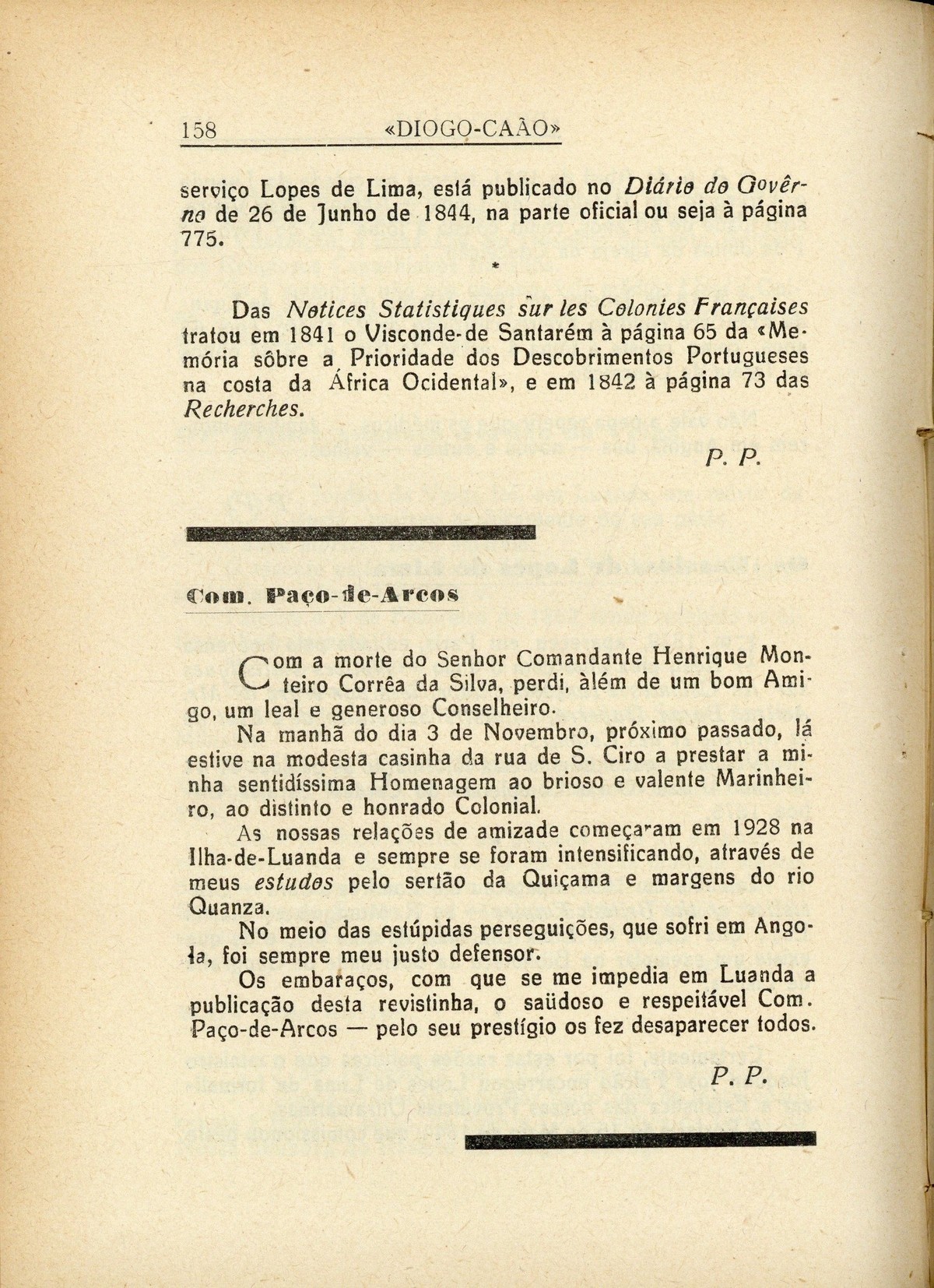 Diogo-Cão : revista ilustrada de assuntos históricos | III série, n.º 5, 1935 > Miscelânea de apontamentos velhos e antigos-impressões, comentários, crítica-nótas à margem & novidades, por P[adro] P[ombo] > 0158 |