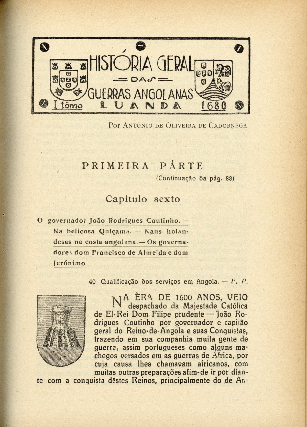 III série, n.º 5, 1935capa verso As lútas liberais em Angola [cont.] História geral das Guerras Angolanas, por António de Oliveira Cadornega História Eclesiástica de AngolaBiblioteca da Academia das Ciências : memórias do Convento de S. José de Angola, por Vicente Salgado [cont.] Os holandeses em Angola (1641-1648) [cont.] Medicina IndígenaRelação de sementes, por Joaquim José da Silva Miscelânea de apontamentos velhos e antigos-impressões, comentários, crítica-nótas à margem & novidades, por P[adro] P[ombo] | III série, n.º 5, 1935 > História geral das Guerras Angolanas, por António de Oliveira Cadornega > Luanda 1680 [cont.] > 0133 Tipo:image/jpeg Tamanho:592 KB |