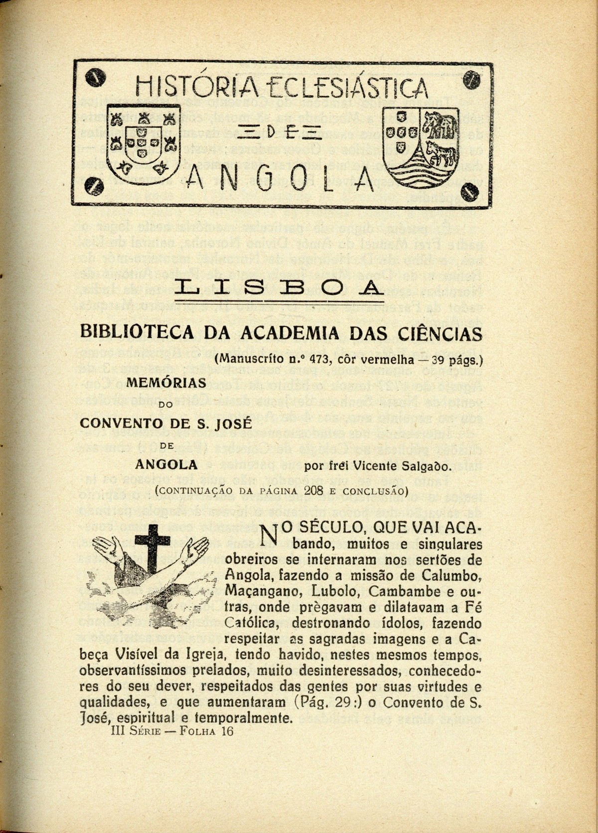 Diogo-Cão : revista ilustrada de assuntos históricos | III série, n.º 8, 1936 > História Eclesiástica de Angola > Biblioteca da Academia das Ciências : memórias do Convento de S. José de Angola, por Vicente Salgado [conclusão] > 0241 |