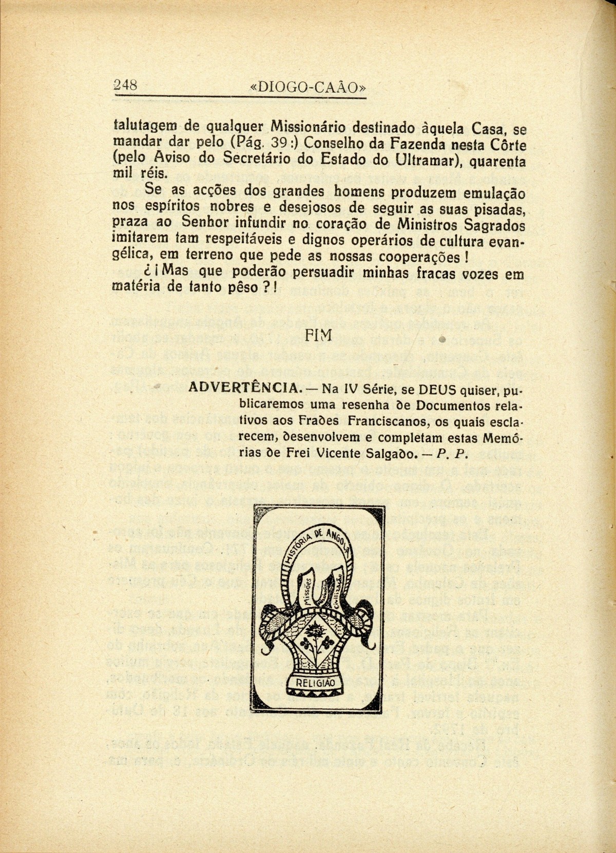 Diogo-Cão : revista ilustrada de assuntos históricos | III série, n.º 8, 1936 > História Eclesiástica de Angola > Biblioteca da Academia das Ciências : memórias do Convento de S. José de Angola, por Vicente Salgado [conclusão] > 0248 |