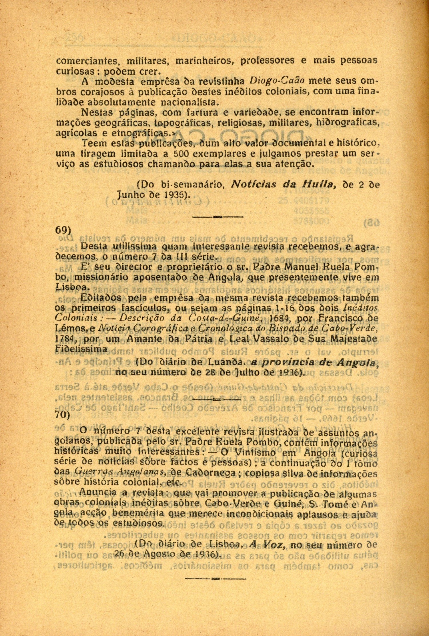 Diogo-Cão : revista ilustrada de assuntos históricos | III série, n.º 8, 1936 > Miscelânea de apontamentos velhos e antigos-impressões, comentários, crítica-nótas à margem & novidades, por P[adre] P[ombo] > contracapa |
