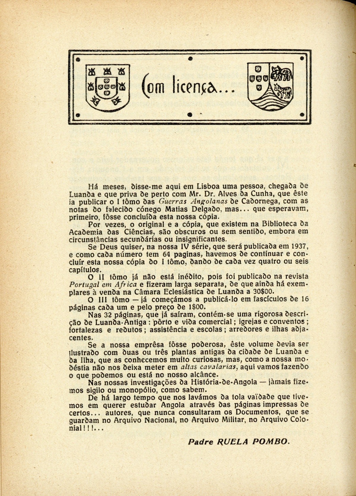 III série, n.º 8, 1936capa verso História geral das Guerras Angolanas, por António de Oliveira de Cadornega Com licença..., por Padre Ruela Pombo As lútas liberais em Angola [cont.] História Eclesiástica de AngolaBiblioteca da Academia das Ciências : memórias do Convento de S. José de Angola, por Vicente Salgado [conclusão] Miscelânea de apontamentos velhos e antigos-impressões, comentários, crítica-nótas à margem & novidades, por P[adre] P[ombo] | III série, n.º 8, 1936 > Com licença..., por Padre Ruela Pombo > 0230 Tipo:image/jpeg Tamanho:670 KB |