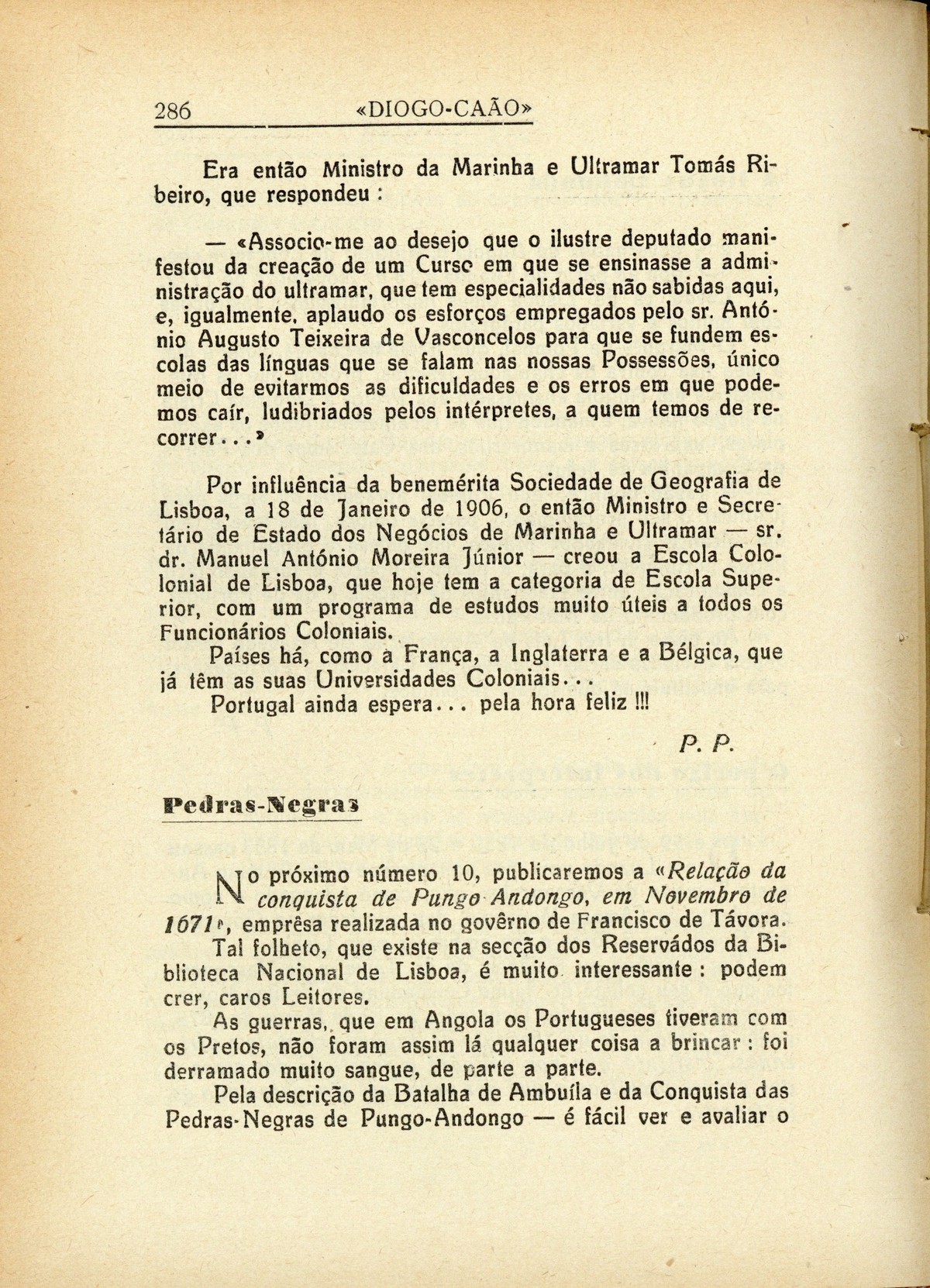Diogo-Cão : revista ilustrada de assuntos históricos | III série, n.º 9, 1936 > Miscelânea de apontamentos velhos e antigos-impressões, comentários, crítica-nótas à margem & novidades, por P[adre] P[ombo] > 0286 |