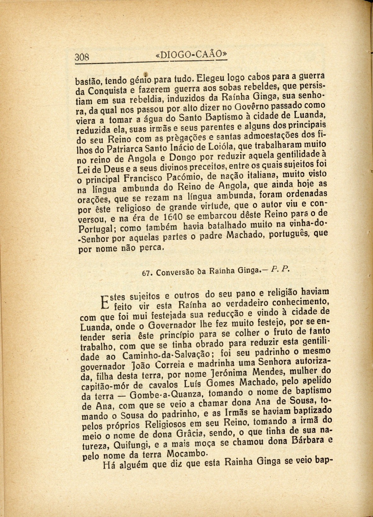 Diogo-Cão : revista ilustrada de assuntos históricos III série, n.º 10, 1936 capa verso História militar de Angola Portugal Ultramarino, por Padre Pombo História geral das Guerras Angolanas, por António de Oliveira de Cadornega verso contracapa | III série, n.º 10, 1936 > História geral das Guerras Angolanas, por António de Oliveira de Cadornega > Luanda 1680 [cont.] > 0308 |