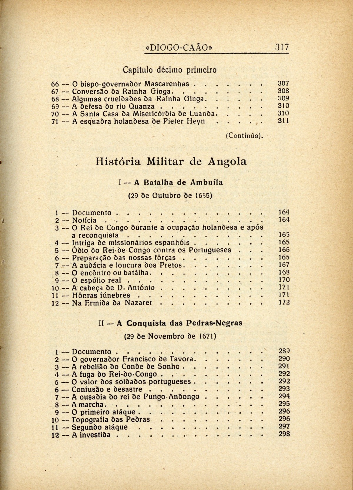 Diogo-Cão : revista ilustrada de assuntos históricos III série, n.º 10, 1936 capa verso História militar de Angola Portugal Ultramarino, por Padre Pombo História geral das Guerras Angolanas, por António de Oliveira de Cadornega verso contracapa | III série, n.º 10, 1936 > Índice > 0317 |