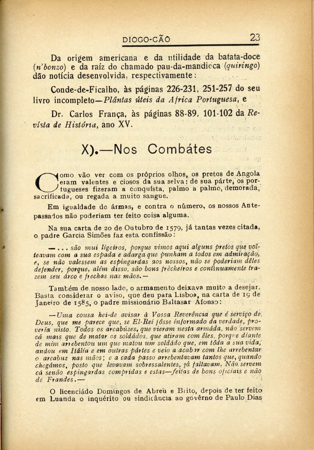 Diogo-Cão : revista ilustrada de assuntos históricos | II série, n.º 1, 1933 > Angola-Menina (na segunda metade do século de quinhentos), nótas arqueológicas & comentários por Padre Ruela > X-Nos combátes > 0023 |