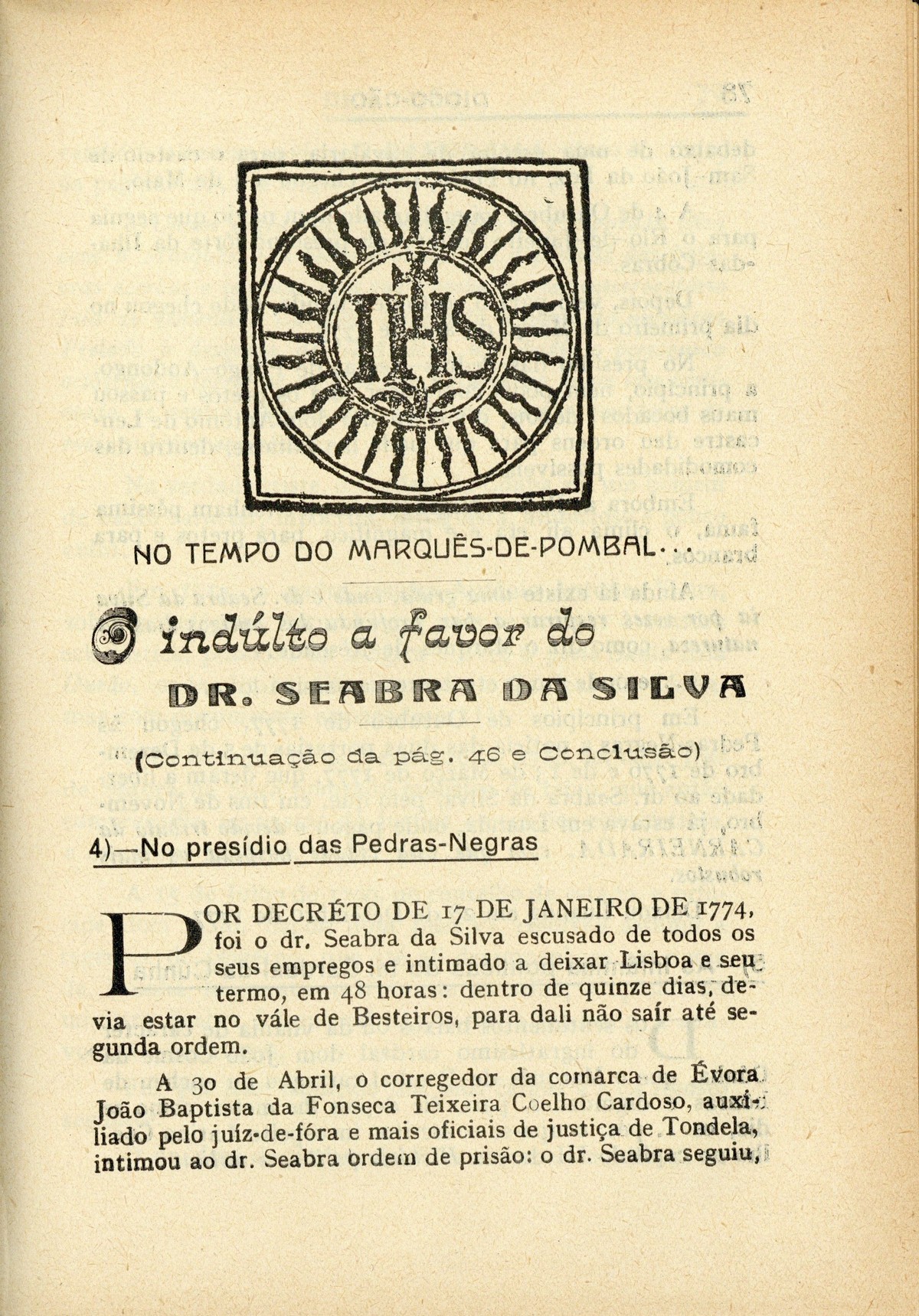 II série, n.º 3, 1933capa verso Sindicância aos actos de Paulo Dias de Novais [conclusão] Questões marítimas internacionaisOs portugueses & os ingleses [cont.] No tempo do Marquês-de-Pombal...O indúlto a favor do Dr. Seabra da Silva, por P[adre] R[uela] [conclusão] Presídios angolanosPedras-Negras de Pungo-Andongo (1671), por José Matias Delgado Miscelânea de apontamentos velhos e antigos-impressões, comentários, crítica-nótas à margem & novidades | II série, n.º 3, 1933 > No tempo do Marquês-de-Pombal... > O indúlto a favor do Dr. Seabra da Silva, por P[adre] R[uela] [conclusão] > 0077 Tipo:image/jpeg Tamanho:666 KB |