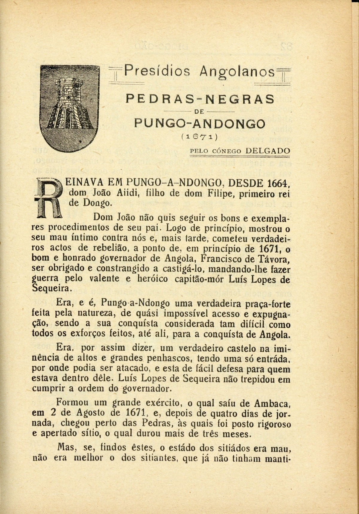 II série, n.º 3, 1933capa verso Sindicância aos actos de Paulo Dias de Novais [conclusão] Questões marítimas internacionaisOs portugueses & os ingleses [cont.] No tempo do Marquês-de-Pombal...O indúlto a favor do Dr. Seabra da Silva, por P[adre] R[uela] [conclusão] Presídios angolanosPedras-Negras de Pungo-Andongo (1671), por José Matias Delgado Miscelânea de apontamentos velhos e antigos-impressões, comentários, crítica-nótas à margem & novidades | II série, n.º 3, 1933 > Presídios angolanos > Pedras-Negras de Pungo-Andongo (1671), por José Matias Delgado > 0081 Tipo:image/jpeg Tamanho:650 KB |