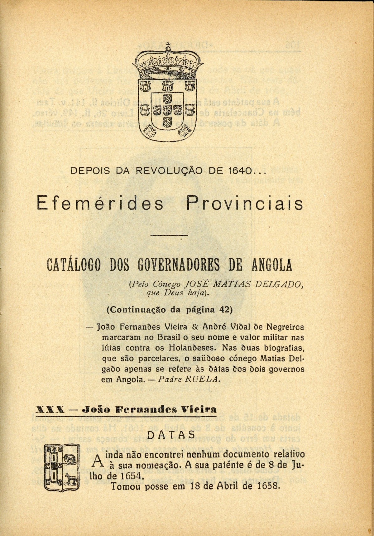 II série, n.º 4, 1933capa verso Efemérides ProvinciaisCatálogo dos Governadores de Angola, por José Matias Delgado [cont.] Questões marítimas internacionaisOs portugueses & os ingleses [cont.] História do BrasilA inconfidência-mineira ou A conspiração de Tiradentes Miscelânea de apontamentos velhos e antigos-impressões, comentários, crítica-nótas à margem & novidades | II série, n.º 4, 1933 > Efemérides Provinciais > Catálogo dos Governadores de Angola, por José Matias Delgado [cont.] > 0105 Tipo:image/jpeg Tamanho:584 KB |
