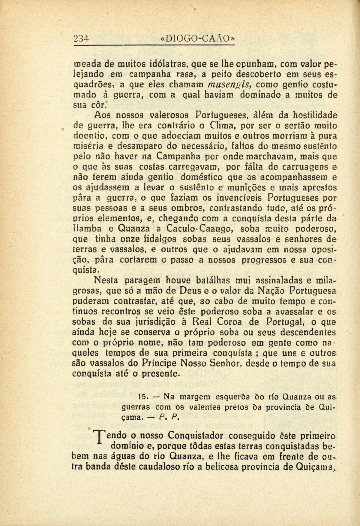 II série, n.º 8, 1934capa verso Efemérides provinciaisCatálogo dos Governadores de Angola, por José Matias Delgado [cont.] História general das Guerras Angolanas [cont.] Relação do Reino do Congo e das terras circunvizinhas [cont.] Miscelânea de apontamentos velhos e antigos-impressões, comentários, crítica-nótas à margem & novidades, por Padre Pombo | II série, n.º 8, 1934 > História general das Guerras Angolanas [cont.] > 0234 Tipo:image/jpeg Tamanho:720 KB |