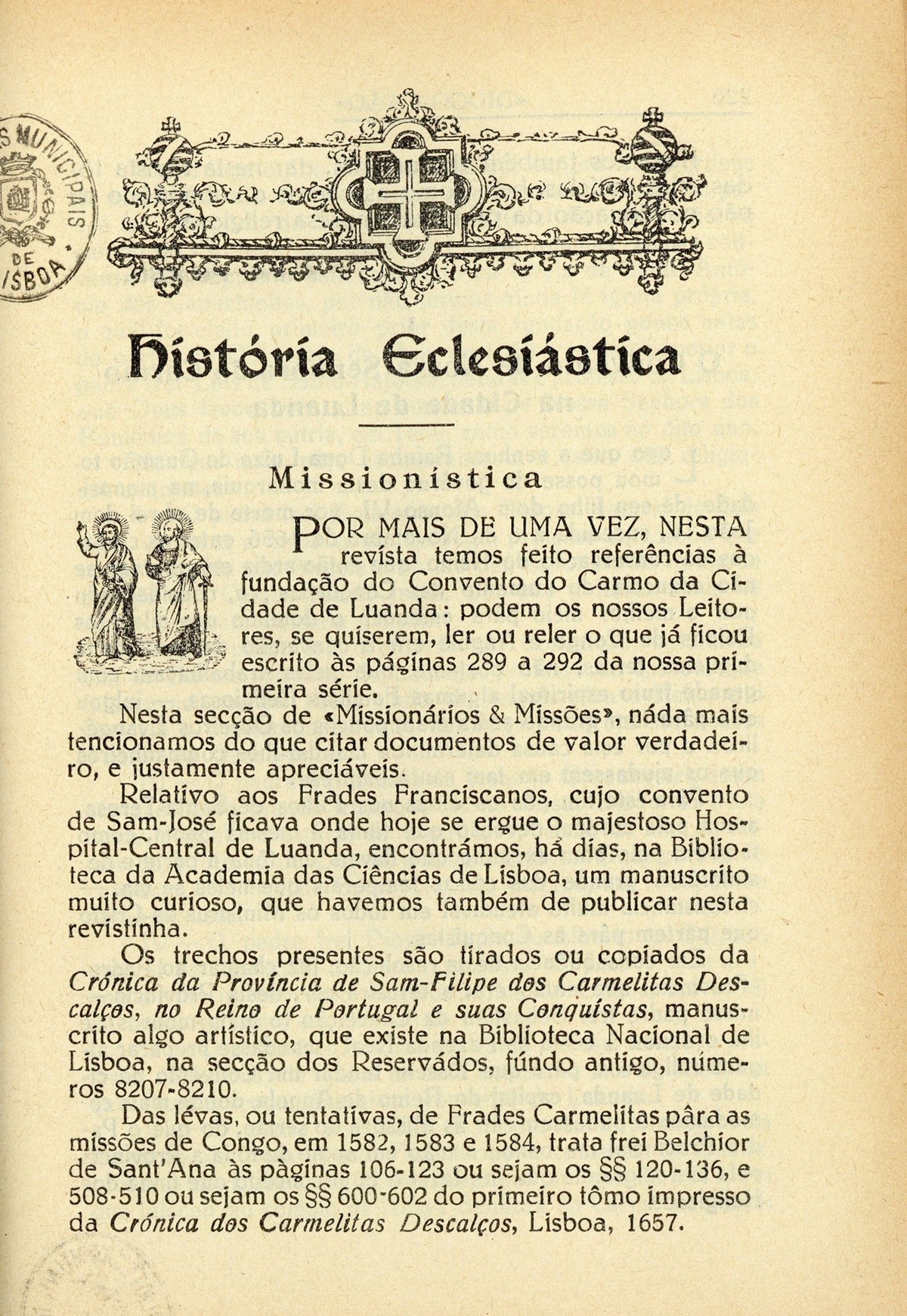 II série, n.º 8, 1934capa verso Efemérides provinciaisCatálogo dos Governadores de Angola, por José Matias Delgado [cont.] História general das Guerras Angolanas [cont.] Relação do Reino do Congo e das terras circunvizinhas [cont.] Miscelânea de apontamentos velhos e antigos-impressões, comentários, crítica-nótas à margem & novidades, por Padre Pombo | II série, n.º 8, 1934 > História Eclesiástica > Missionística > 0225 Tipo:image/jpeg Tamanho:730 KB |