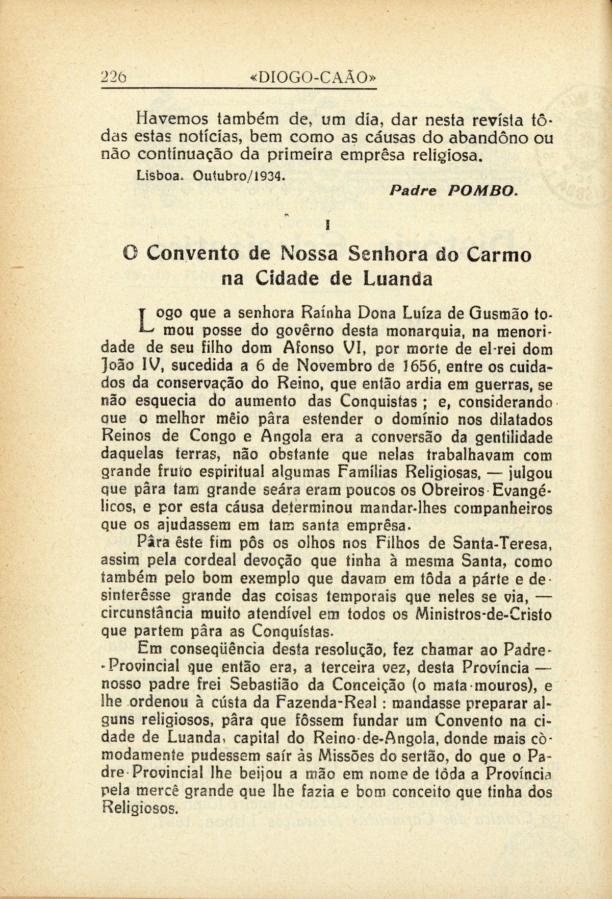 II série, n.º 8, 1934capa verso Efemérides provinciaisCatálogo dos Governadores de Angola, por José Matias Delgado [cont.] História general das Guerras Angolanas [cont.] Relação do Reino do Congo e das terras circunvizinhas [cont.] Miscelânea de apontamentos velhos e antigos-impressões, comentários, crítica-nótas à margem & novidades, por Padre Pombo | II série, n.º 8, 1934 > História Eclesiástica > Missionística > 0226 Tipo:image/jpeg Tamanho:725 KB |