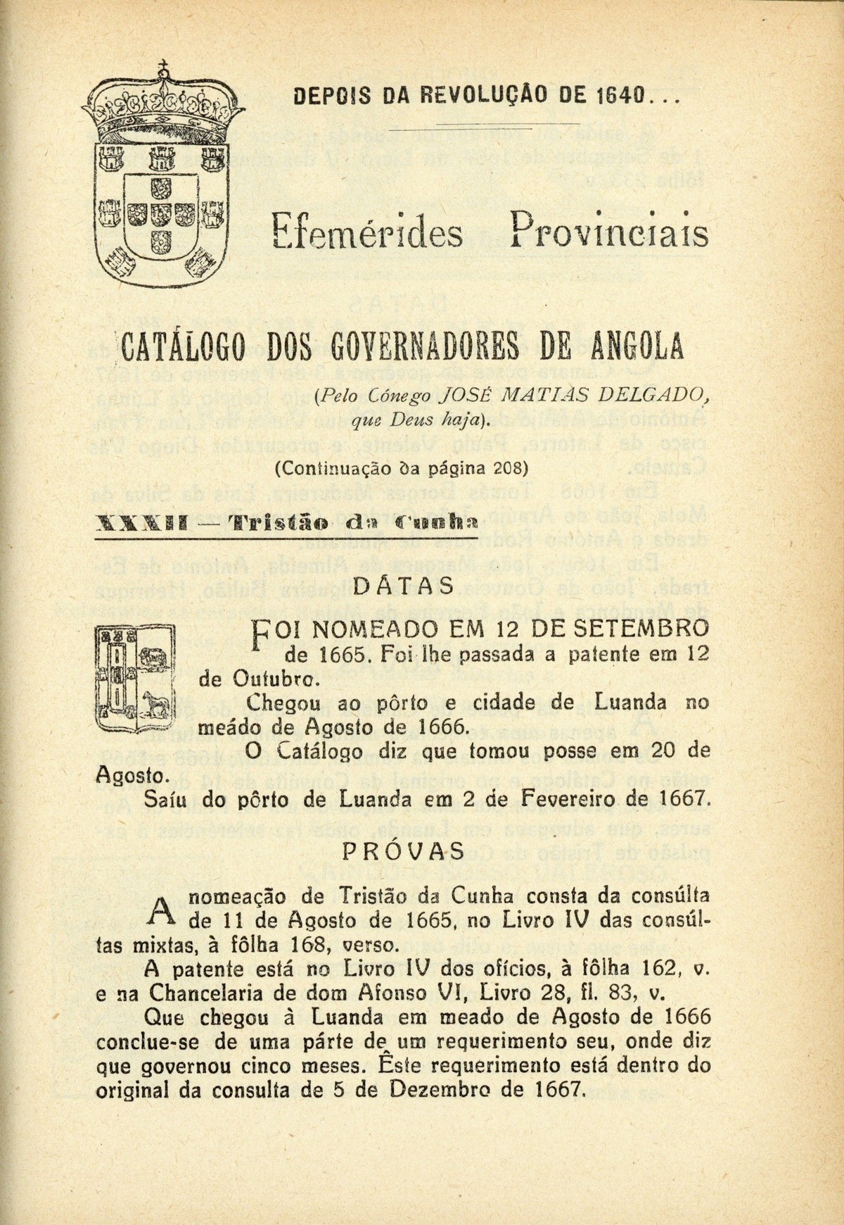 II série, n.º 8, 1934capa verso Efemérides provinciaisCatálogo dos Governadores de Angola, por José Matias Delgado [cont.] História general das Guerras Angolanas [cont.] Relação do Reino do Congo e das terras circunvizinhas [cont.] Miscelânea de apontamentos velhos e antigos-impressões, comentários, crítica-nótas à margem & novidades, por Padre Pombo | II série, n.º 8, 1934 > Efemérides provinciais > Catálogo dos Governadores de Angola, por José Matias Delgado [cont.] > 0231 Tipo:image/jpeg Tamanho:612 KB |