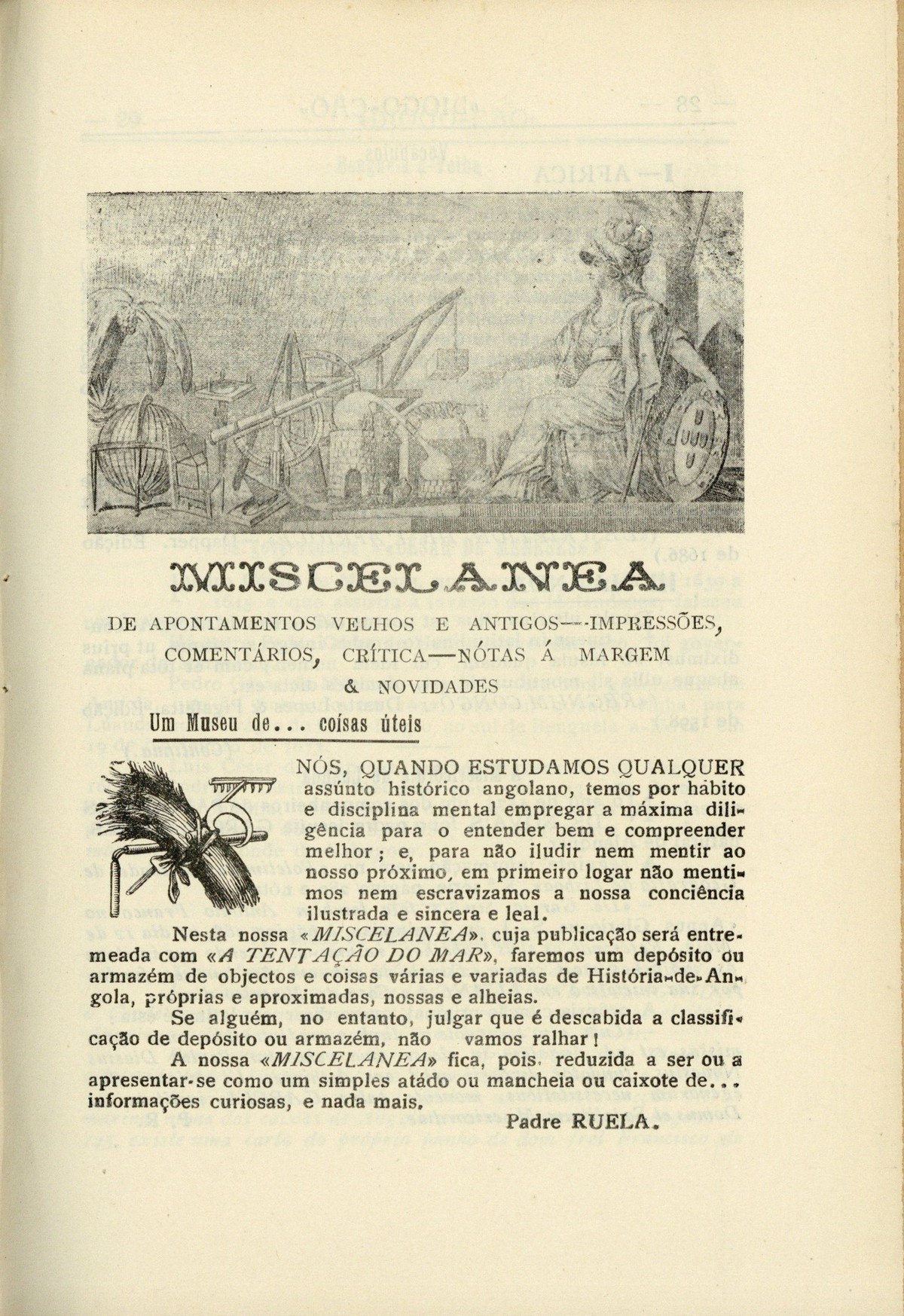 I série, n.º 1, 1931capa verso rosto 0002 Os portugueses em AngolaDiogo Cão, por P[adre] R[uela] As Fortalezas de LuandaA Fortaleza do Môrro Sam-Paulo, por P[adre] R[uela] Efemérides ProvinciaisCatálogo ou lista dos Governadores de Angola, com as respectivas provas, por José Matias Delgado Monumentos & ArquivosPrograma-Tese , por Padre Ruela História EclesiásticaMissões e Missionários, por P[adre] R[uela] No Tempo dos Filipes...Medicina tropical angolana, por Padre Ruela Miscelânea de apontamentos velhos e antigos-impressões, comentários, crítica-nótas á margem & novidades, por Padre Ruela | I série, n.º 1, 1931 > Miscelânea de apontamentos velhos e antigos-impressões, comentários, crítica-nótas á margem & novidades, por Padre Ruela > 0027 Tipo:image/jpeg Tamanho:583 KB |