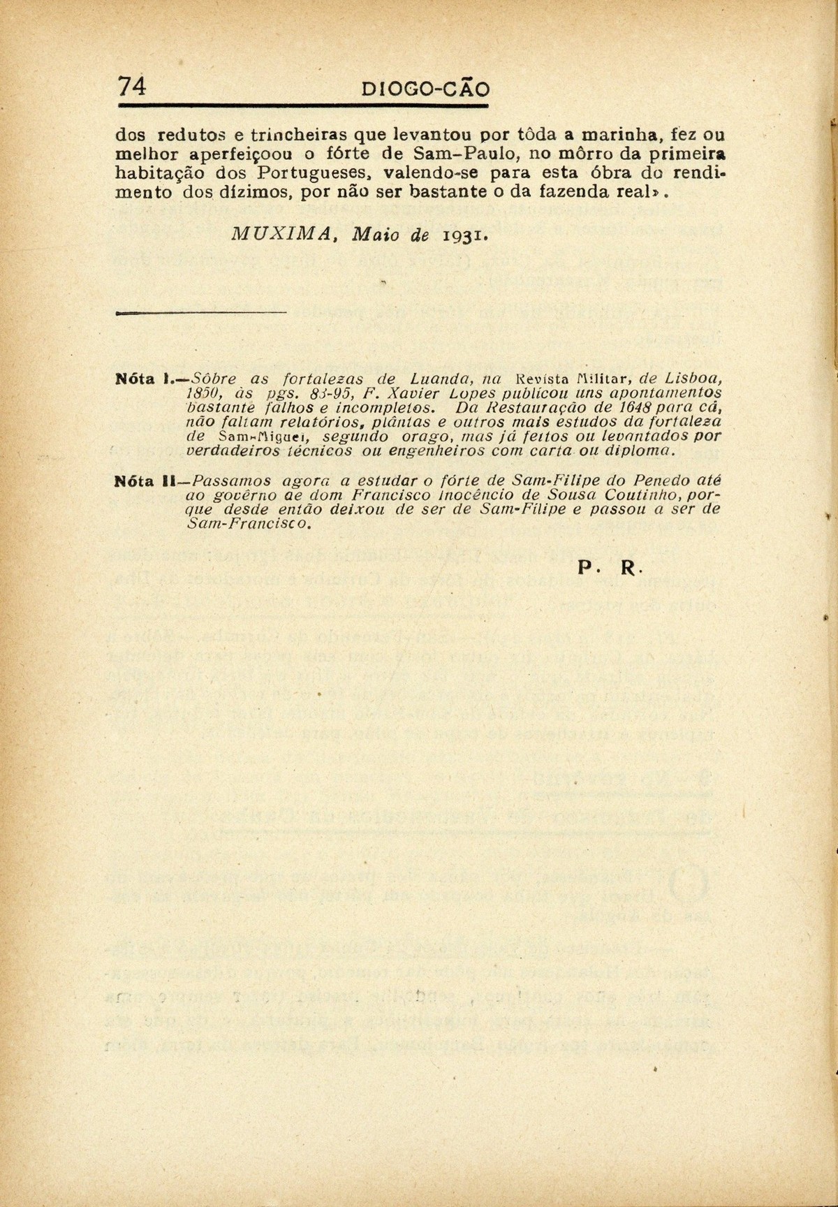I série, n.º 3, 1932capa verso A Fortalezas de LuandaA Fortaleza do Môrro Sam-Paulo, por P[adre] R[uela] [cont.] Efemérides provinciaisCatálogo ou lista dos Governadores de Angola com as respectivas provas, por José Matias Delgado [cont.] História EclesiásticaMissões & Missionários [cont.] No tempo dos Filipes...Os holandeses contra os portugueses [cont.] Miscelânea de apontamentos velhos e antigos-impressões, comentários, crítica-nótas á margem & novidades | I série, n.º 3, 1932 > A Fortalezas de Luanda > A Fortaleza do Môrro Sam-Paulo, por P[adre] R[uela] [cont.] > 0074 Tipo:image/jpeg Tamanho:501 KB |