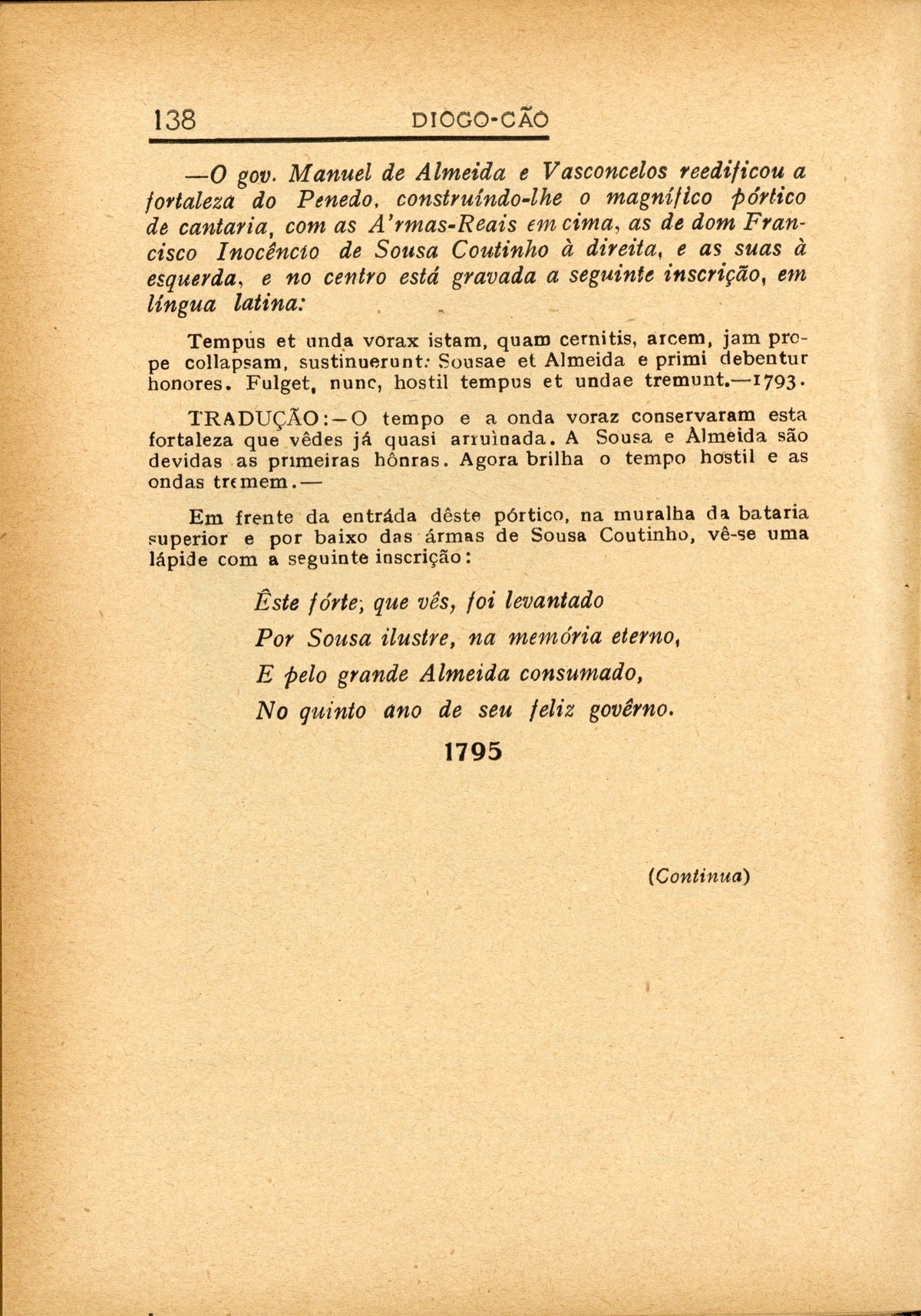 Diogo-Cão : revista ilustrada de assuntos históricos I série, n.º 5, 1932 capa verso Efemérides provinciais Miscelânea de apontamentos vehos e antigos-Impressões, comentários, crítica-Nótas à margem & novidades verso contracapa | I série, n.º 5, 1932 > As Fortalezas de Luanda > A Fortaleza do Penedo Sam-Francisco [cont.] > 0138 |