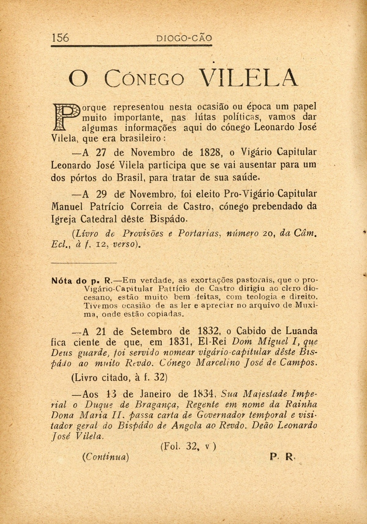 Diogo-Cão : revista ilustrada de assuntos históricos I série, n.º 5, 1932 capa verso Efemérides provinciais Miscelânea de apontamentos vehos e antigos-Impressões, comentários, crítica-Nótas à margem & novidades verso contracapa | I série, n.º 5, 1932 > Miscelânea de apontamentos vehos e antigos-Impressões, comentários, crítica-Nótas à margem & novidades > 0156 |