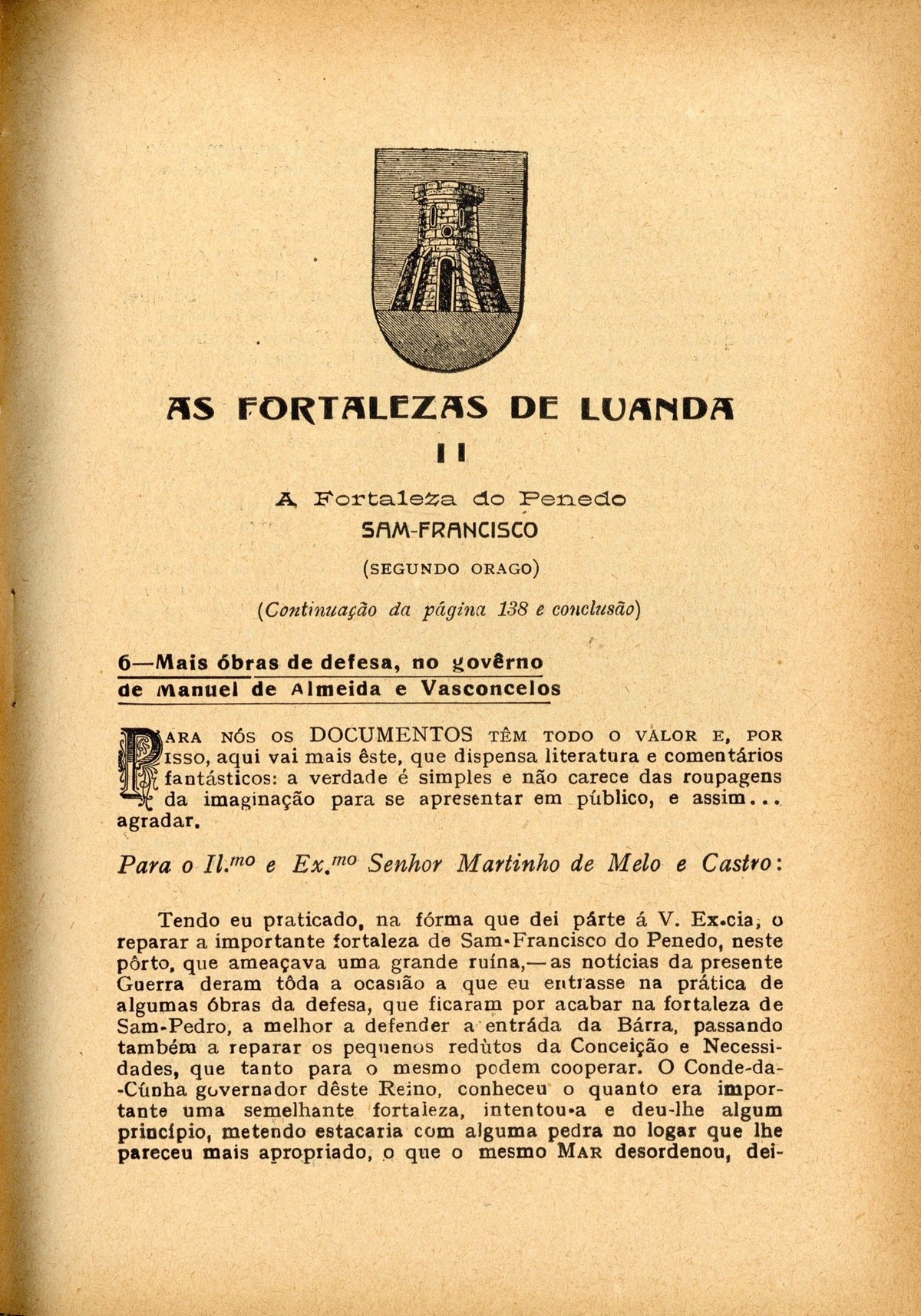 I série, n.º 6, 1932capa verso As Fortalezas de LuandaA Fortaleza do Penedo Sam-Francisco [conclusão] Efemérides provinciaisCatálogo ou lista dos Governadores de Angola com as respectivas próvas, por José Matias Delgado [cont.] Medicina TropicalA Escola Médica de Luanda, em 1791, por Padre Ruela História EclesiásticaA Ermida de Nossa Senhora do Cabo da Ilha-de-Luanda (1669) 1640 Primeiro de DezembroOs holandeses contra os portugueses [cont.] A tentação do marCom licença..., por Pdre Ruela [cont.] A censura racional, por Jaime Cortesão As duas políticas : a Utilitária e a Idealista, por H. Lopes de Mendonça Os dois interêsses : o espiritual eo temporal, por Cardeal Saraiva verso contracapa | I série, n.º 6, 1932 > As Fortalezas de Luanda > A Fortaleza do Penedo Sam-Francisco [conclusão] > 0165 Tipo:image/jpeg Tamanho:671 KB |
