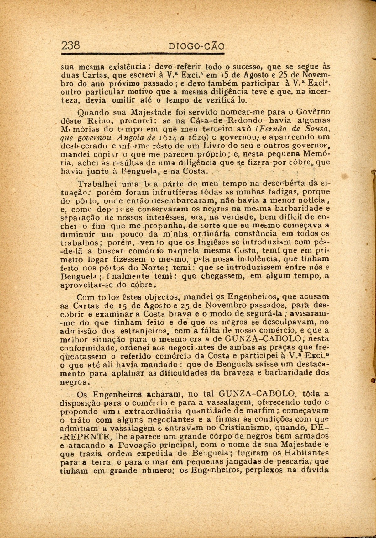 Diogo-Cão : revista ilustrada de assuntos históricos I série, n.º 8, 1932 capa verso História da Colonização Portuguesa de Angola Efemérides Provinciais A tentação do mar verso contracapa Com licença..., por Padre Ruela Defesa das terras descobertas, por Henrique Major O mistério das navegações, por E. A. Bettencourt ; O resgáte dos escravos, por Fortunato de Almeida ; as cartas-de-marear, por Sousa Viterbo Descobérta de Pôrto-Santo (1418), por Damião de Góis Sôbre o Infante-dom-Henrique..., por P[adre] R[uela] | I série, n.º 8, 1932 > Presídios angolanos > Novo-Redondo (1769) > 0238 |