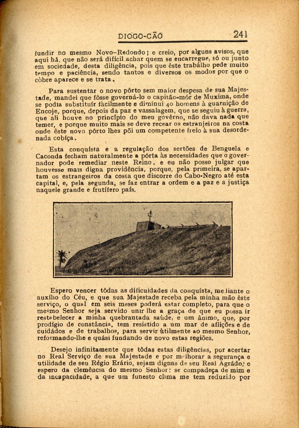 Diogo-Cão : revista ilustrada de assuntos históricos I série, n.º 8, 1932 capa verso História da Colonização Portuguesa de Angola Efemérides Provinciais A tentação do mar verso contracapa Com licença..., por Padre Ruela Defesa das terras descobertas, por Henrique Major O mistério das navegações, por E. A. Bettencourt ; O resgáte dos escravos, por Fortunato de Almeida ; as cartas-de-marear, por Sousa Viterbo Descobérta de Pôrto-Santo (1418), por Damião de Góis Sôbre o Infante-dom-Henrique..., por P[adre] R[uela] | I série, n.º 8, 1932 > Presídios angolanos > Novo-Redondo (1769) > 0241 |