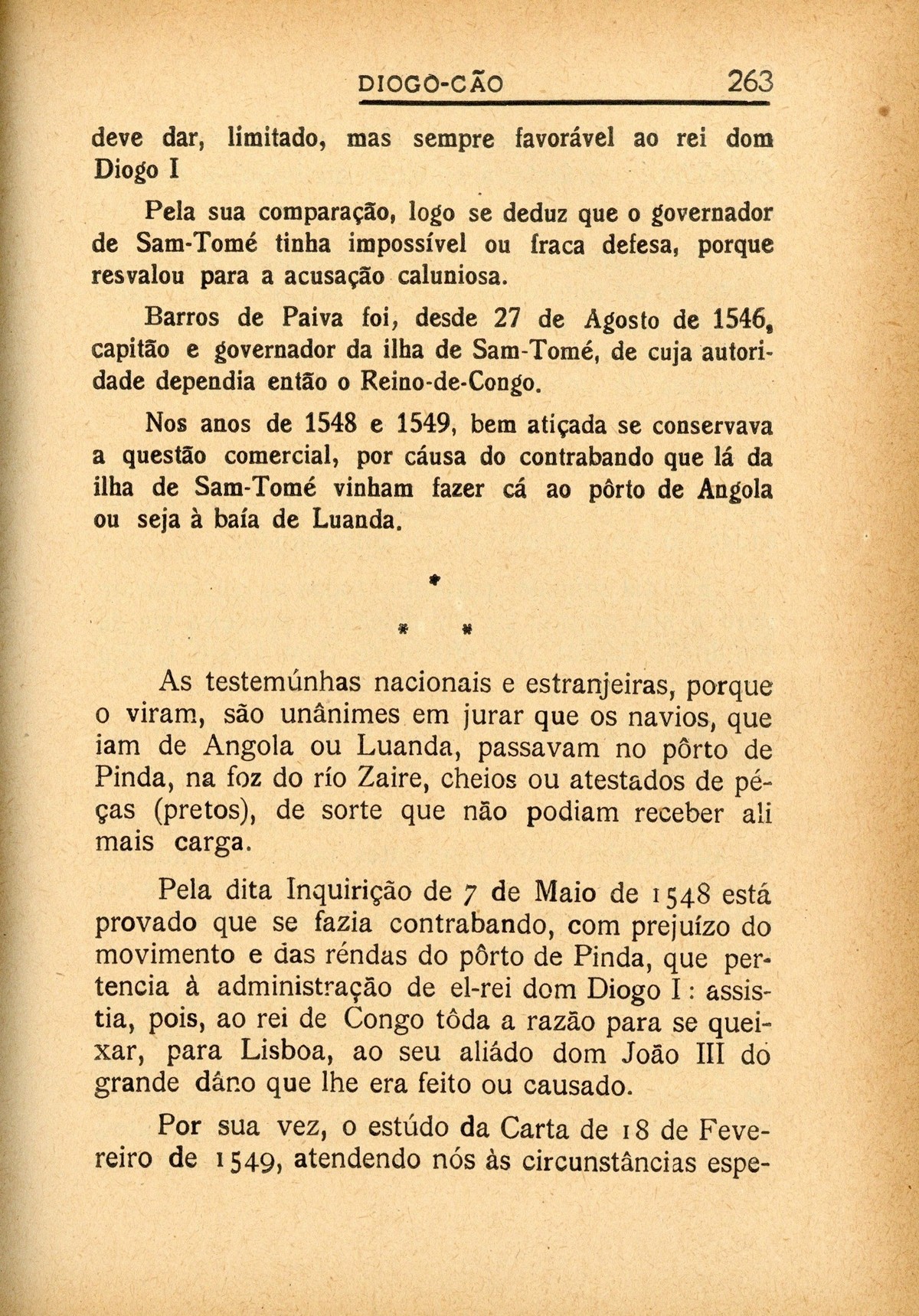 I série, n.º 9, 1932capa verso As Fortalezas de LuandaA paz & a guerra..., por Padre Ruela A baía de Luanda ou o pôrto de Angola (antes de 1575), por Padre Ruela No tempo dos Filipes... Efemérides Provinciais. Catálogo dos Governadores de Angola [cont.] , por José Matias Delgado 1640 Primeiro de DezembroOs holandeses contra os portugueses [cont.] Miscelânea de Apontamentos velhos e antigos-Impressões, comentários, crítica-nótas à margem & novidades | I série, n.º 9, 1932 > A baía de Luanda ou o pôrto de Angola (antes de 1575), por Padre Ruela > 0263 Tipo:image/jpeg Tamanho:671 KB |