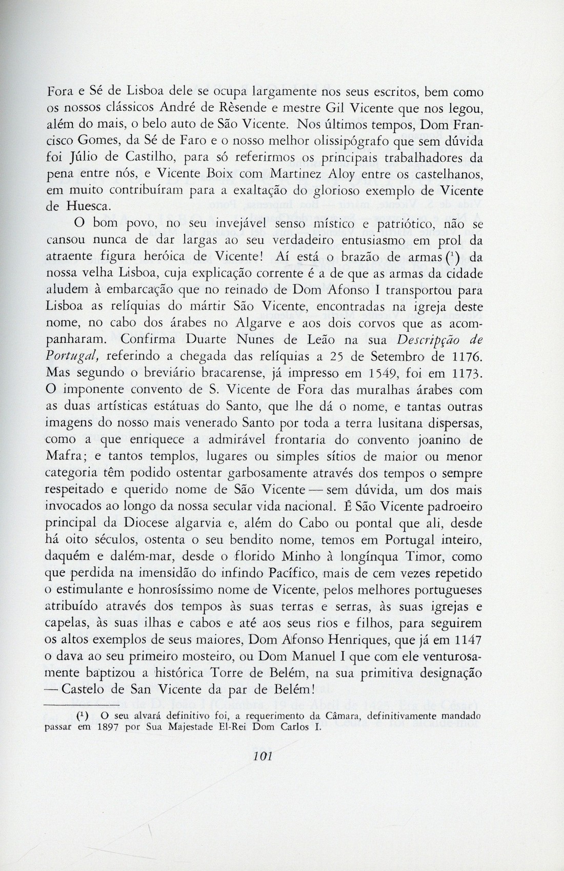 Olisipo : boletim do Grupo "Amigos de Lisboa" A. XXXV, n.º 135, Julho/Dezembro 1972 capa verso rosto / sumário 0074 Arte Rupestre Tagana 0075 I - Achado de Arte Rupestre nas margens do Tejo, por Paulo Caratão Soromenho II - Problemas de ordem cronológica e atribuição funcional, por Eduardo da Cunha Serrão São Vicente maravilhoso padrinho da Lusa Capital (argumento literário para o filme do centenário, de 1973), por Francisco Santos Costa Bento de Moura Portugal na Lisboa do século XVIII, por Abílio Mendes do Amaral A Luís de Camões nas celebrações do 4.º Centenário da publicação da 1.ª edição de «Os Lusíadas», por Inocêncio Castelhano Gago Coutinho : geógrafo, por Manoel Affonso Dias Doces lembranças do Convento de Odivelas, por Paulo Caratão Soromenho publicidade contracapa | A. XXXV, n.º 135, Julho/Dezembro 1972 > São Vicente maravilhoso padrinho da Lusa Capital (argumento literário para o filme do centenário, de 1973), por Francisco Santos Costa > 0101 |