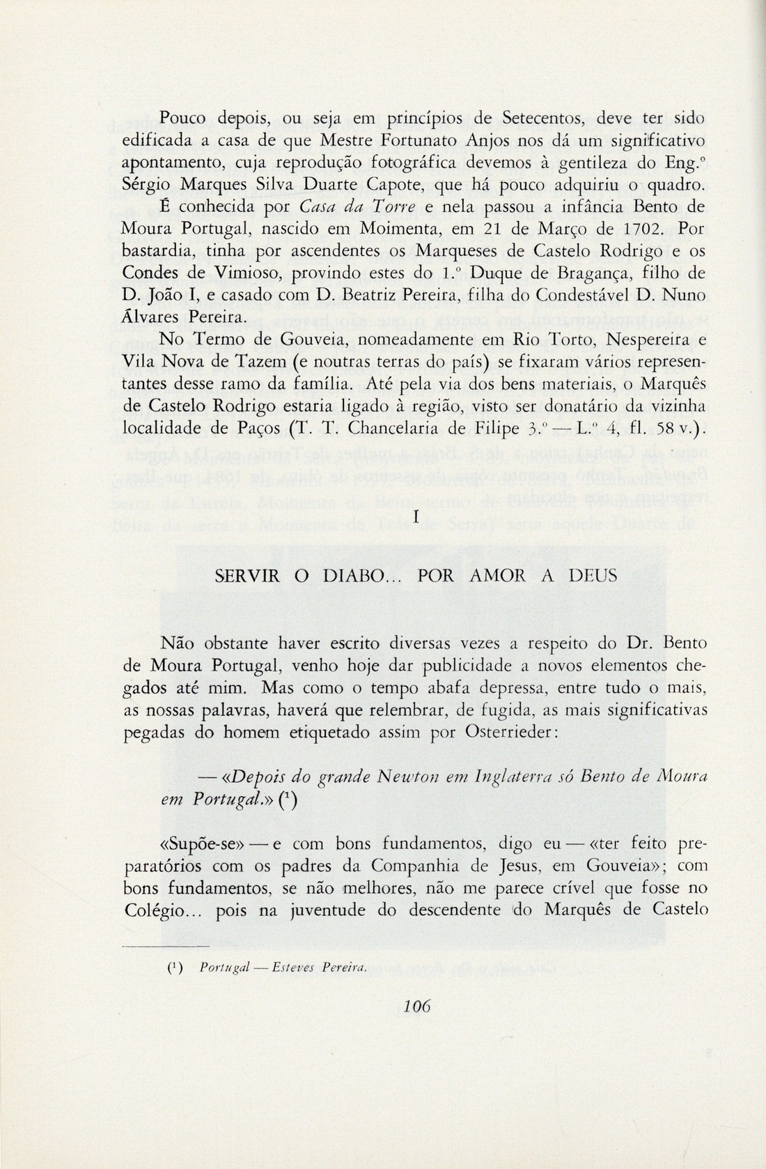 Olisipo : boletim do Grupo "Amigos de Lisboa" A. XXXV, n.º 135, Julho/Dezembro 1972 capa verso rosto / sumário 0074 Arte Rupestre Tagana 0075 I - Achado de Arte Rupestre nas margens do Tejo, por Paulo Caratão Soromenho II - Problemas de ordem cronológica e atribuição funcional, por Eduardo da Cunha Serrão São Vicente maravilhoso padrinho da Lusa Capital (argumento literário para o filme do centenário, de 1973), por Francisco Santos Costa Bento de Moura Portugal na Lisboa do século XVIII, por Abílio Mendes do Amaral A Luís de Camões nas celebrações do 4.º Centenário da publicação da 1.ª edição de «Os Lusíadas», por Inocêncio Castelhano Gago Coutinho : geógrafo, por Manoel Affonso Dias Doces lembranças do Convento de Odivelas, por Paulo Caratão Soromenho publicidade contracapa | A. XXXV, n.º 135, Julho/Dezembro 1972 > Bento de Moura Portugal na Lisboa do século XVIII, por Abílio Mendes do Amaral > 0106 |