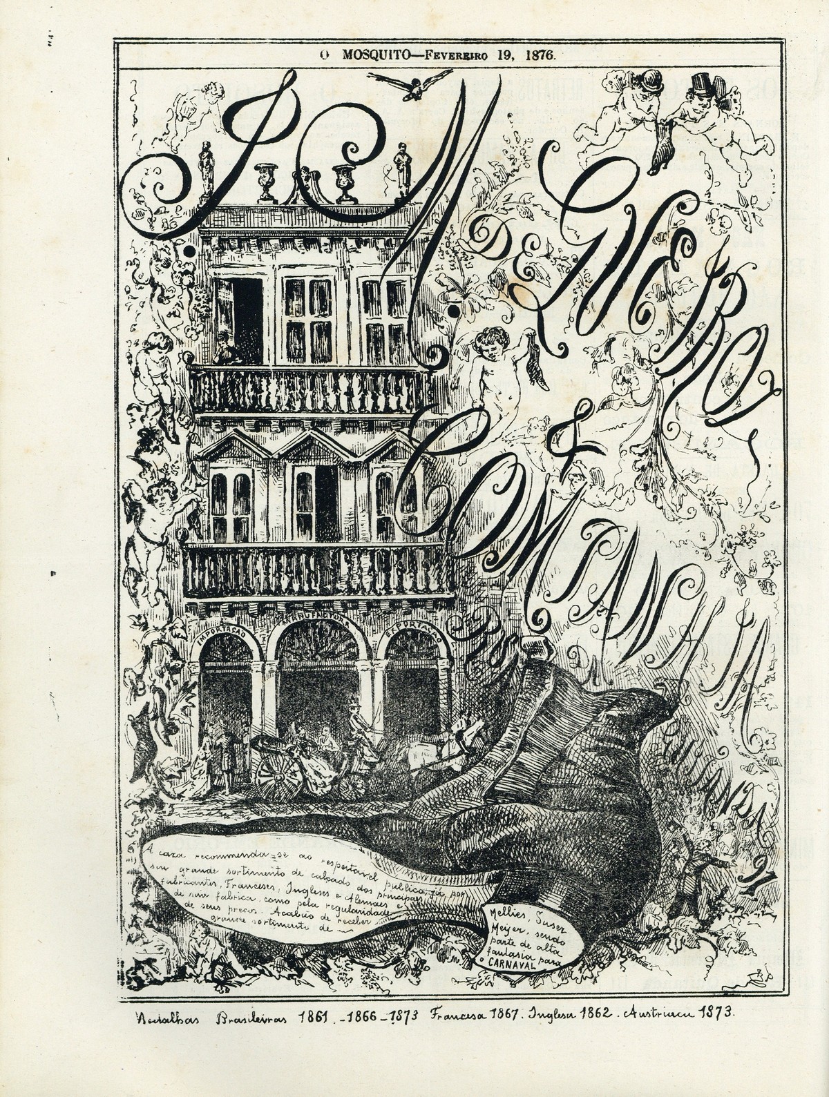 O mosquito A. 8, n.º 343, 19 Fevereiro 1876 capa [ilustração], por Valle Expediente ; Tenha paciencia... que eu vou com pressa!, por Alfredo Riancho Fabula instantanea, por Bob ; Galeria theatral, por Gryphus ; Fabula instantanea, por Antonino Pio ; O correio dos theatros, por Tinoco [ilustração], por Valle A crise carnavalesco-ministerial [ilustração], por Valle Salpicos, por Bob publicidade I. M. de Queiroz & Companhia [ilustração], por B[ordalo] P[inheiro] | A. 8, n.º 343, 19 Fevereiro 1876 > I. M. de Queiroz & Companhia [ilustração], por B[ordalo] P[inheiro] > 0008 |