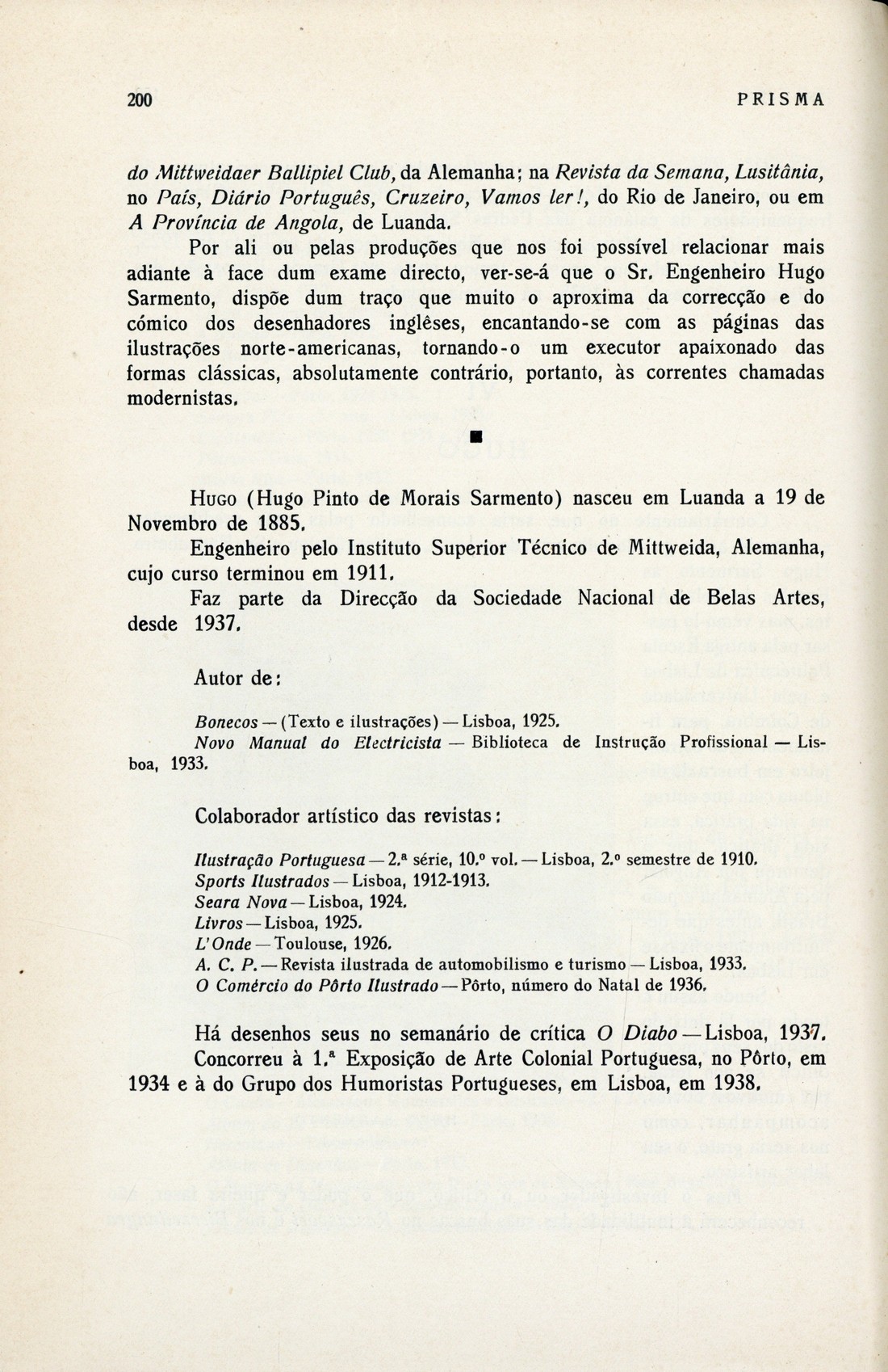 Prisma : revista trimensal de filosofia, ciência e arte N.º 3, Dezembro 1938 capa verso Subsídios para o estudo da arqueologia bracarense : a fonte do ídolo e o culto da Nabia, por Carlos Teixeira Rosa queimada, por Pedro Homem de Mello Bênção, por António Porto-Além Uma carta de Brasão de Armas de El-Rei D. Fernando, por João Braga Vila-Moura, por António Porto-Além O berço, por Costa Sacadura | N.º 3, Dezembro 1938 > Caricaturistas portugueses, por Alberto Meira > 0200 |