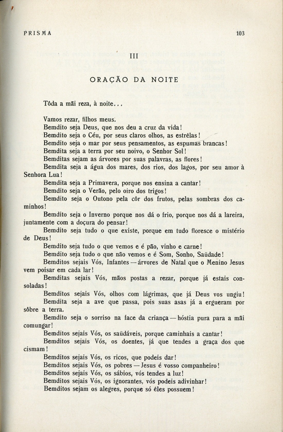 Prisma : revista trimensal de filosofia, ciência e arte N.º 2, Julho 1939 capa verso O poeta Bocage [cont.], por Alfredo Alves da Cruz Dilúvio, por Pedro Homem de Mello Sôbre o Sphenophyllum Costae Sterzel do carbonífero português, por Carlos Teixeira Oração para uma pobre que morreu tuberculosa, por Luís Cardim Canção da mãi, entoada baixinho, muito baixinho, nas horas em que a alma acorda..., por Maria Henriques Osswald Uma página da restauração : a fuga do Embaixador D. Fernando Teles de Faro, por António Cruz | N.º 2, Julho 1939 > Canção da mãi, entoada baixinho, muito baixinho, nas horas em que a alma acorda..., por Maria Henriques Osswald > 0103 |