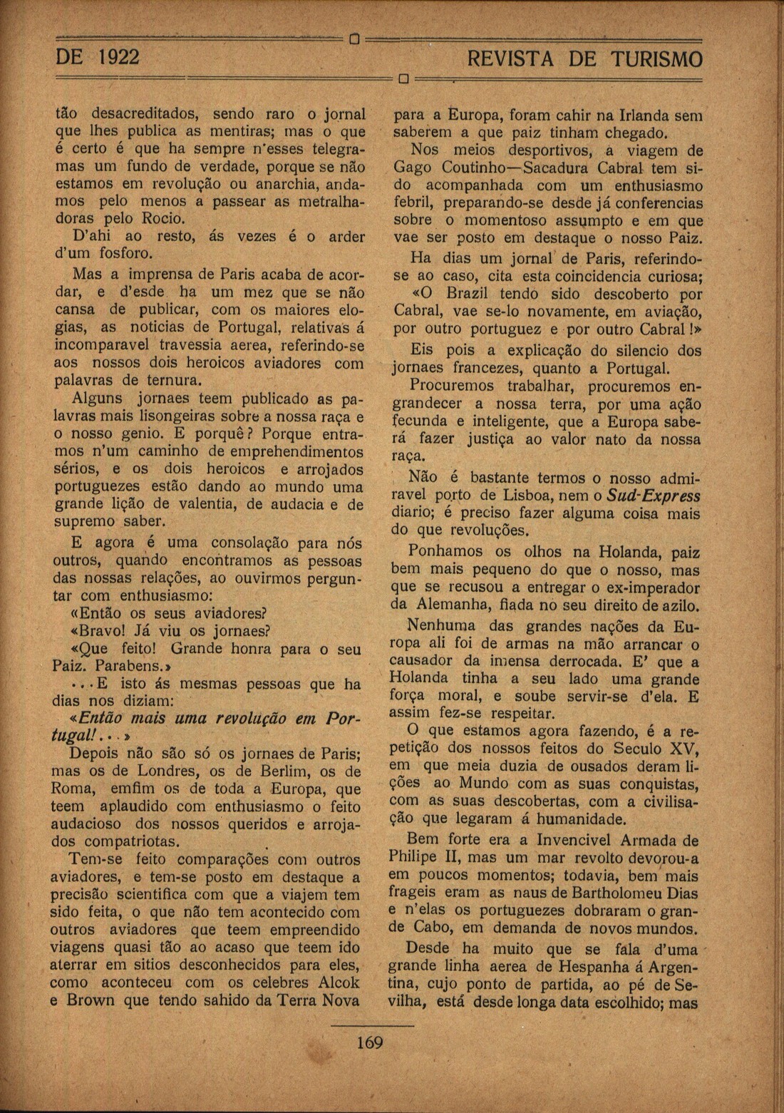 Revista de turismo: publicação quinzenal de turismo, propaganda, viagens, navegação, arte e literatura N.º 119, 5 Mai. 1922 A visita dos Americanos a Portugal, por J. L. Perante a América do Norte : a arte em Portugal : a janela do Convento de Cristo de Tomar, por Brandão Pereira Poetas e artistas : Canção, de António Botto Turismo e hipismo : o grande Concurso Hípico da Primavera, por J. L. Turismo estrangeiro : os Americanos na Europa, por Guerra Maio Portugal pitoresco : a Serra da Lapa e a Capela de Nossa Senhora Notícias diversas | N.º 119, 5 Mai. 1922 > Cartas de Paris, por Guerra Maio > 0169 |