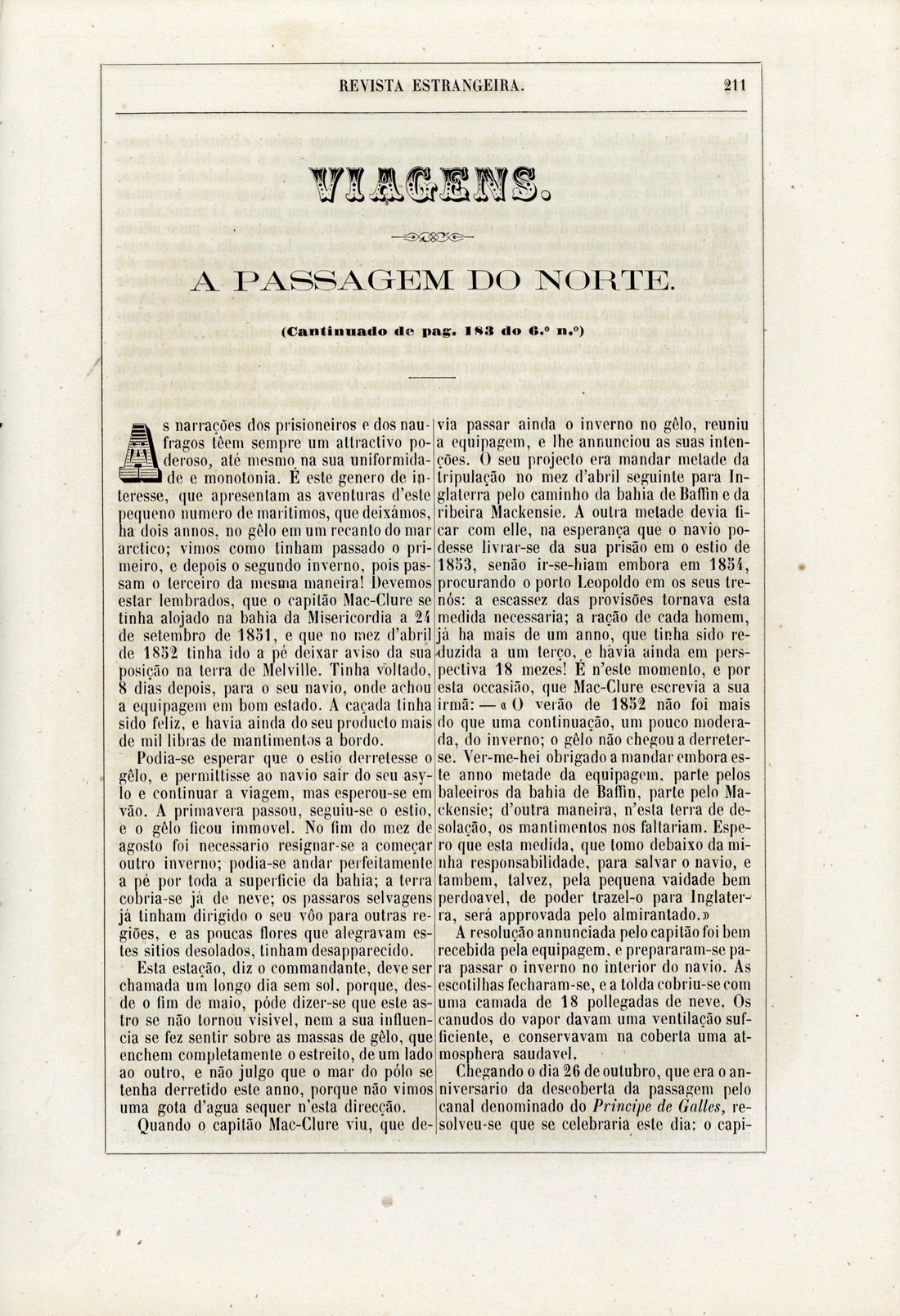 Revista estrangeira : jornal mensal N.º 7, 1854 [Chegada de um comboio de feridos a Bucharest] [Editorial] Nicolau Primeiro, imperador da Rússia | N.º 7, 1854 > Viagens : A passagem do Norte (cont.) > 0211 |