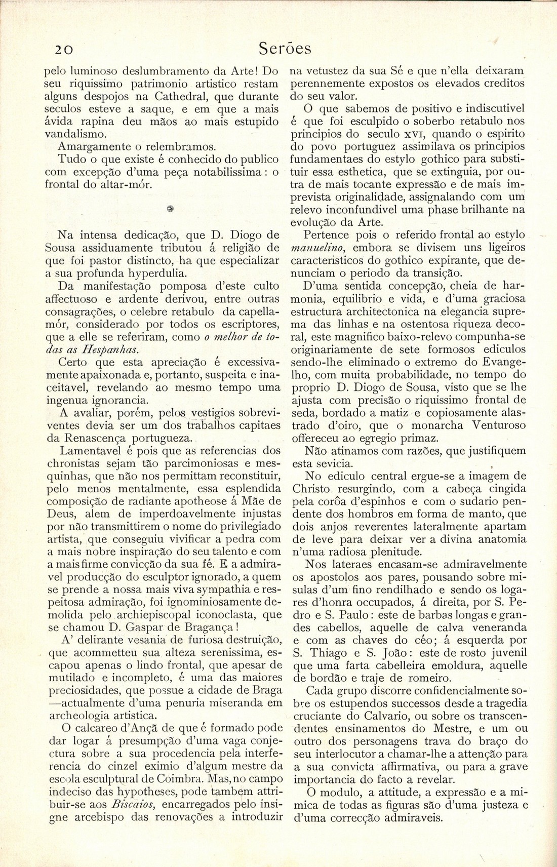 Serões : revista mensal ilustrada N.º 19 (Mai. a Jun. 1903) Capa Sumário A Architectura da Renascença em Portugal, por Albrechet Haupt Indelevel : soneto, por Alberto Marques Pereira Laura de Dianti e Affonso de Ferrare, quadro de Tiziano Vecelli Santo António, ceramica de R. Bordallo Pinheiro | N.º 19 (Mai. a Jun. 1903) > Frontal de altar : na Sé de Baraga, por Manuel Monteiro > 0020 |