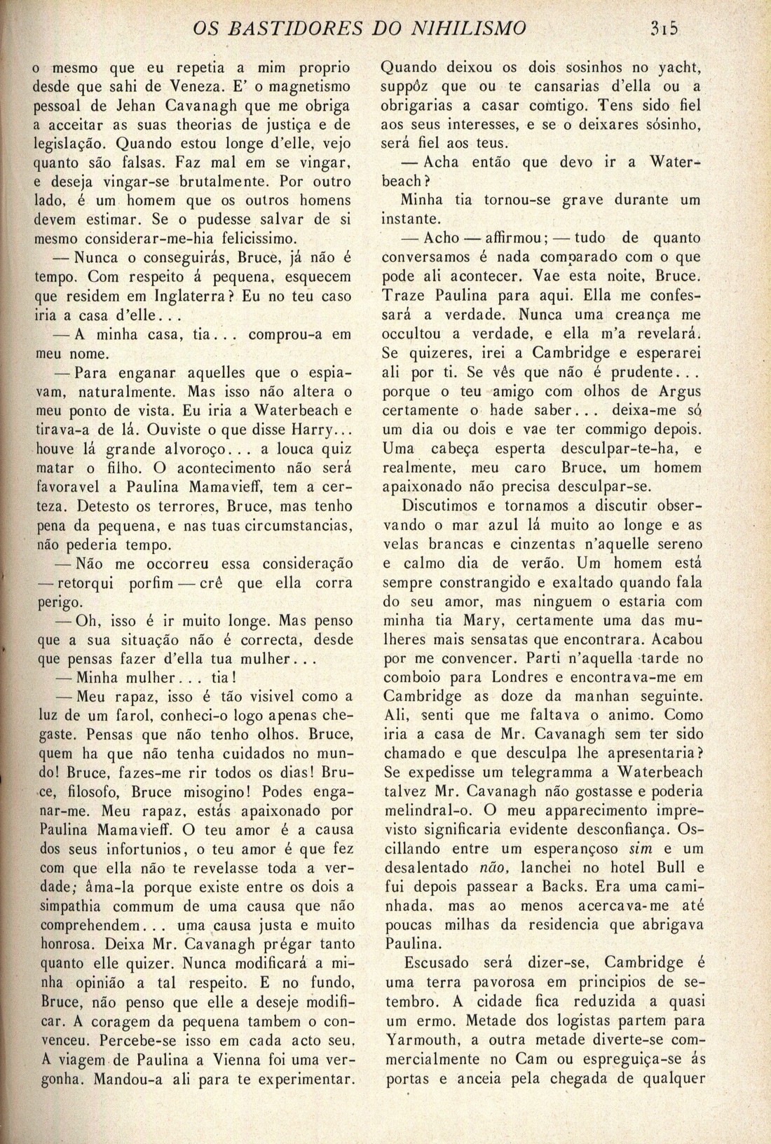 Serões : revista mensal ilustrada N.º 46 (Abr. 1909) Capa Publicidade Sumário Alfredo da Cunha (retrato) Maldita por quê : versos, por Camilo Castello Branco A Irene : versos, por Justino Montalvão A tragedia do calvario : versos, por J. Regalla Portugal pittoresco : aspectos do Bom Jesus de Braga Em terra de lobos : no paiz dos rebanhos, por A. de Dousa Madeira Pinto Pensamentos : versos, por Carlos Affonso dos Santos Transviada : versos, por Ernesto Leitão Reminiscencias do além : versos, por Domingos Magarindo A tua trança, versos, por J. Figueiredo Carlos Reis Quebra-cabeças Ecos e reflexos | N.º 46 (Abr. 1909) > Os bastidores do Nihlismo, por Max Pemberton > 0315 |