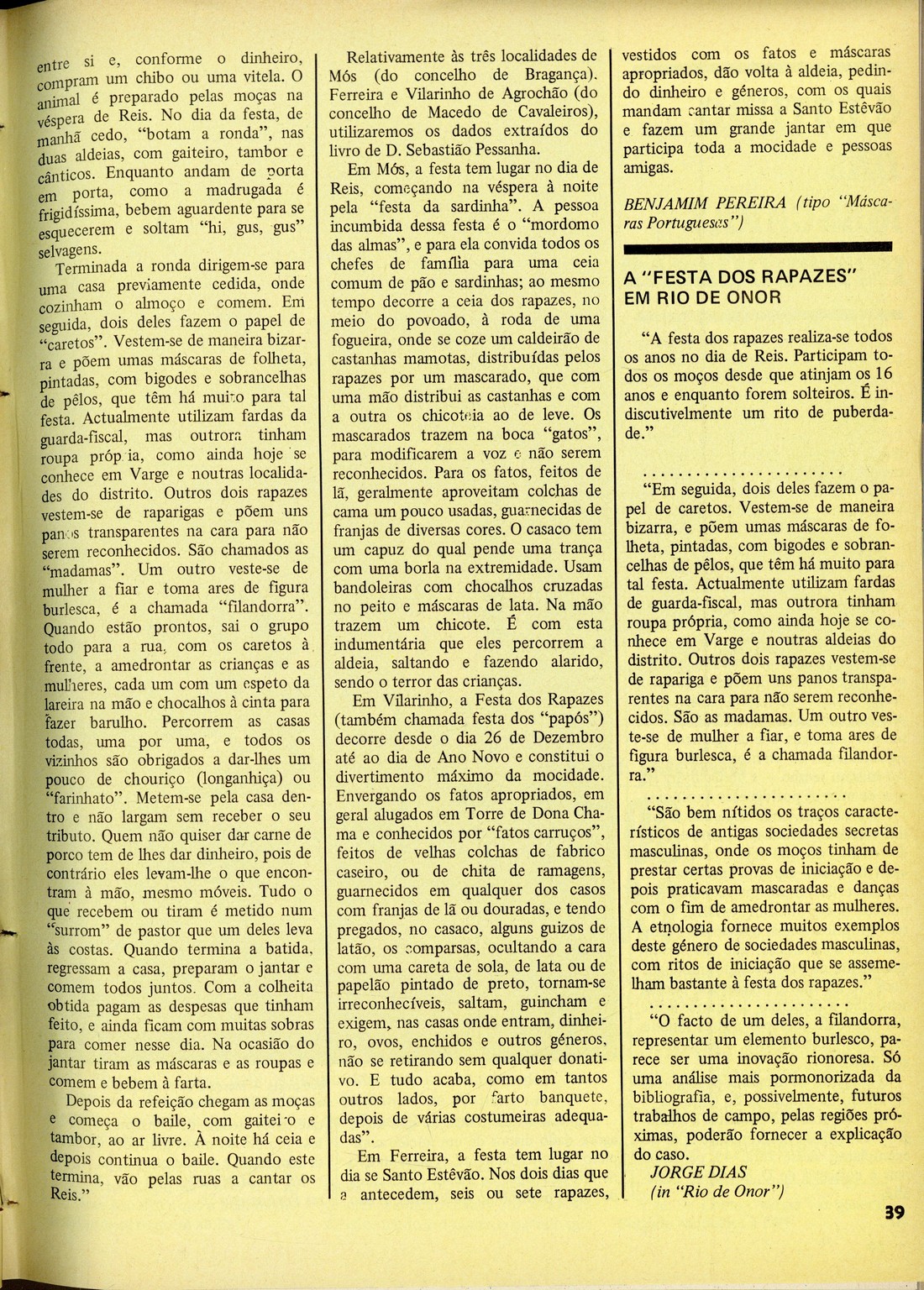 Vida mundial : documentário semanal da imprensa N.º 1895, 8 de Julho de 1976 capa publicidade Editorial, por Natália Correia publicidade Sumário Festival da Força Aérea Crónica : será a revolução reaccionária?, por Cândido Quem vai pagar o desequilíbrio?, por F. F. Entrevista : Manuela Ramalho Eanes : uma mulher como as outras, por Manuela de Sousa Rama Os surdos : um engano silencioso, por Oto Rino Polémica : Cinema : ainda o caso do IPC, por Dórdio Guimarães Uma canção para a Europa [cartoon] Separata : máscaras e mascarados Entrevista : Presidente do PS : Angola, eleições e partido. Pagarão os mercenários pela FNLA?, por Francisco de Sequeiros Cinema : Quando as aberrações acabam bem ; Quase um bom fantástico, por Dórdio Guimarães Teatro : Adóque : mocada rija nas forças democráticas, por João Nordeste TV : quando a TV acerta, por Dórdio Guimarães Os que riem... e os que choram A la minuta Internacional : "Comandos atacaram à meia-noite" : da (duvidosa) moralidade à "segura eficácia", por C. P. C. ; Polónia : acontecimentos para breve, por J. A. Uma certa informação, por J. M. publicidade contracapa | N.º 1895, 8 de Julho de 1976 > Separata : máscaras e mascarados > 0039 |