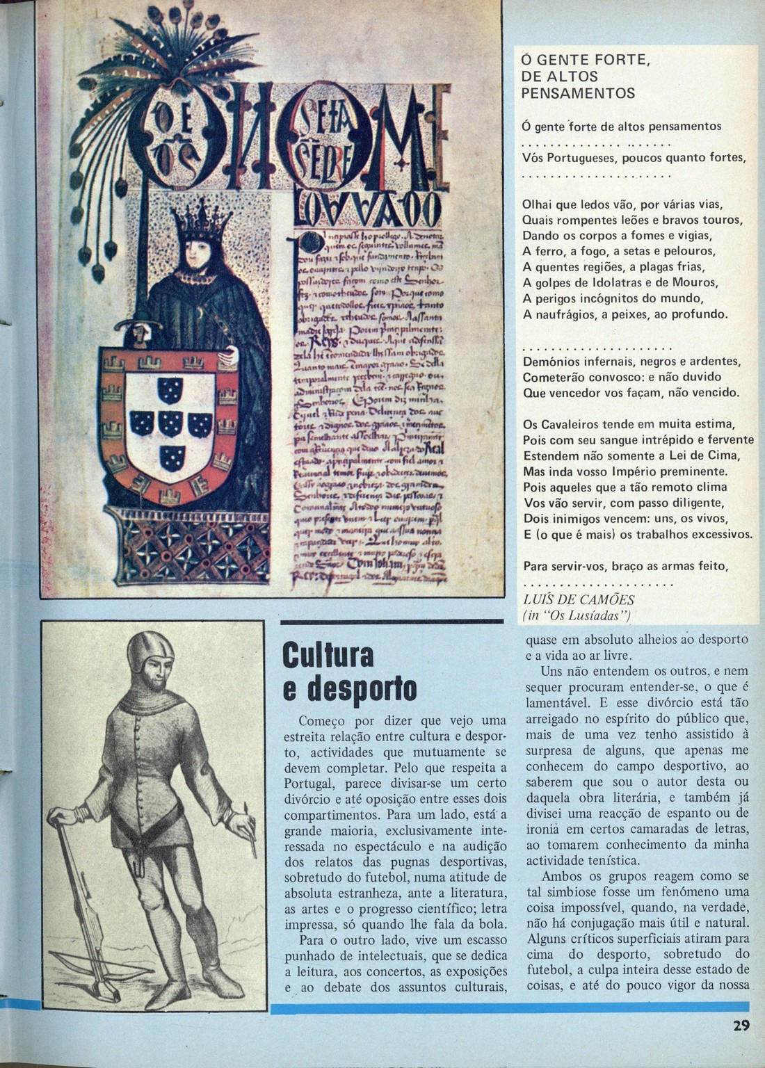 Vida mundial : documentário semanal da imprensa N.º 1896, 15 de Julho de 1976 capa publicidade Editorial, por Natália Correia Sumário Na posse de Eanes França : crise política ou crise do regime?, por Saint-Robert Os que pensam o Mundo e o Homem : só um Deus nos pode ainda salvar, por Rafael Gonçalo Gomes Filipe O contradicionista [cartoon] Conselheiros da revolução : alguns não falam a mesma linguagem, por J. M. Ainda as presidenciais : a análise de Sá Carneiro Joaquim Ferrer : "O General e o Almirante de acordo no essencial", por J. A. Cunhal abre o jogo, por D. A. A tentativa da passagem do nó... sem rede [cartoon], por Cid Os surdos : Otelimpíadas - I, por Oto Rino Separata : "Ó gente forte, de altos pensamentos" Cinema Artes plásticas : Grafil : Expor a três Discos : um disco rebelde, por F. G. Internacional Desporto : atletismo português em Montreal : tocará "A Portuguesa" nas olimpíadas?, por F. Guerra A la minuta Os que riem... e os que choram publicidade contracapa | N.º 1896, 15 de Julho de 1976 > Separata : "Ó gente forte, de altos pensamentos" > 0029 |
