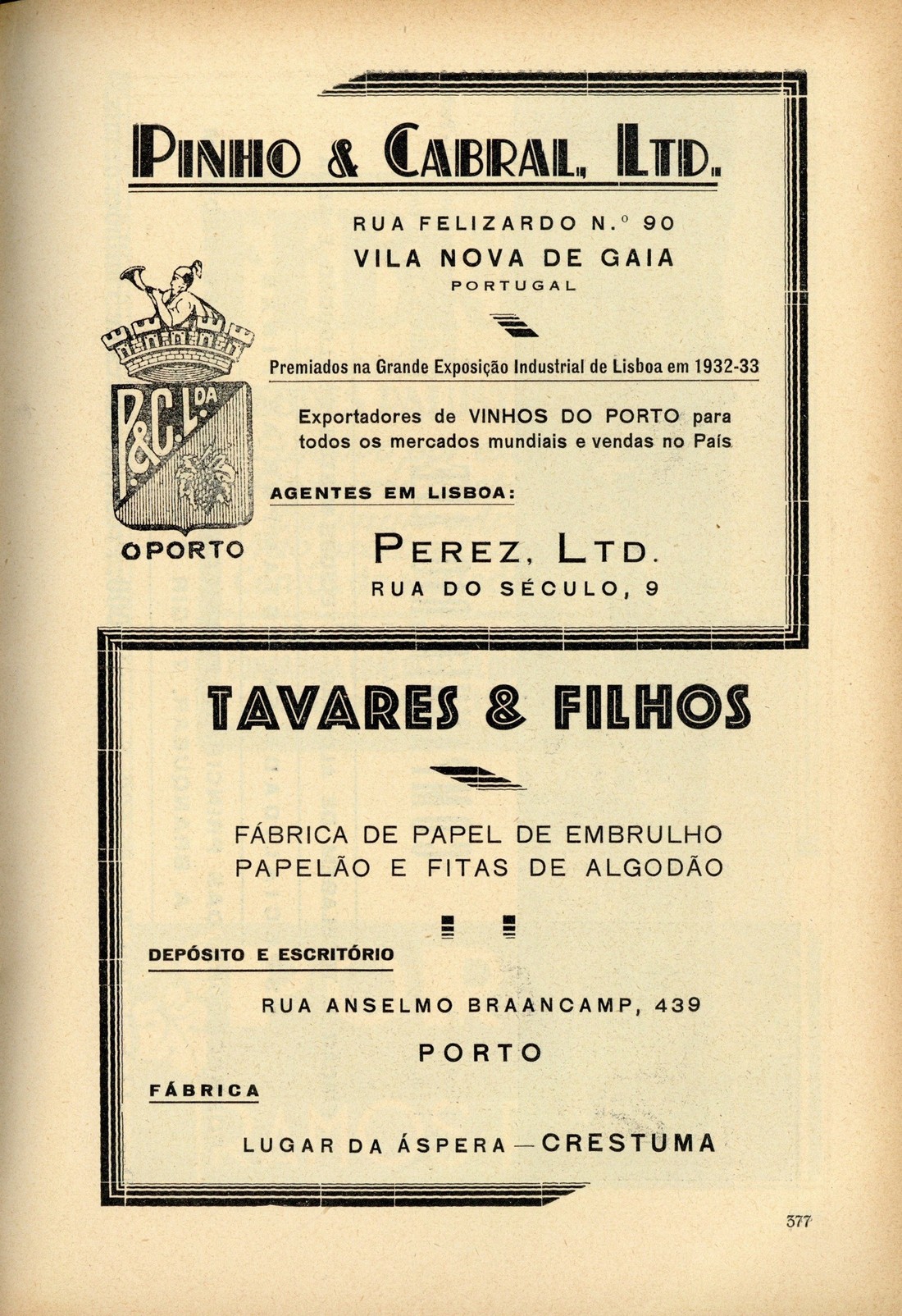 O Império Português na primeira Exposição Colonial Portuguesa : álbum-catálogo oficial Sumário capa verso publicidade publicidade publicidade publicidade anterrosto verso rosto verso General António Óscar de Fragoso Carmona, Presidente da República [ilustração] Doutor António de Oliveira Salazar, Presidente do Conselho de Ministros e Ministro das Finanças Doutor Armindo Monteiro, Ministro das Colónias Doutor Francisco Vieira Machado, Sub-secretário do Estado das Colónias Tenente Henrique Galvão, Director técnico da Exposição Colonial Portuguesa O passado A obra colonizadora dos últimos anos O Porto d'ontem, d'hoje e d'amanhã I. O Porto d'ontem publicidade Regiões de Turismo: três belas excursões I. Porto - Mindelo - Azurara - Vila do Conde - Póvoa do Varzim - Fão - Esposende - Viana do Castelo - Ponte de Lima - Braga Chaves: a princesa do Tâmega, por Júlio Xavier Júnior II. Porto - Francelos - Miramar - Aguda - Granja - Espinho - Ovar - Vila da Feira - Aveiro publicidade III. Porto - S. João da Madeira - Oliveira de Azemeis - Curia - Luso - Buçaco - Coimbra Umas palavras sobre alguns aspectos de organização administrativa colonial, por [João de Azevedo Coutinho] Cabo Verde: o arquipélago da melancolia vive o esforço duma importante realização económica, por Machado Saldanha Angola, por Artur d'Almeida d'Eça Moçambique, por António Barradas publicidade Roteiro: resumo elucidativo do visitante da Primeira Exposição Colonial Portuguesa Expositores verso contracapa | Sumário > publicidade > 0377 |