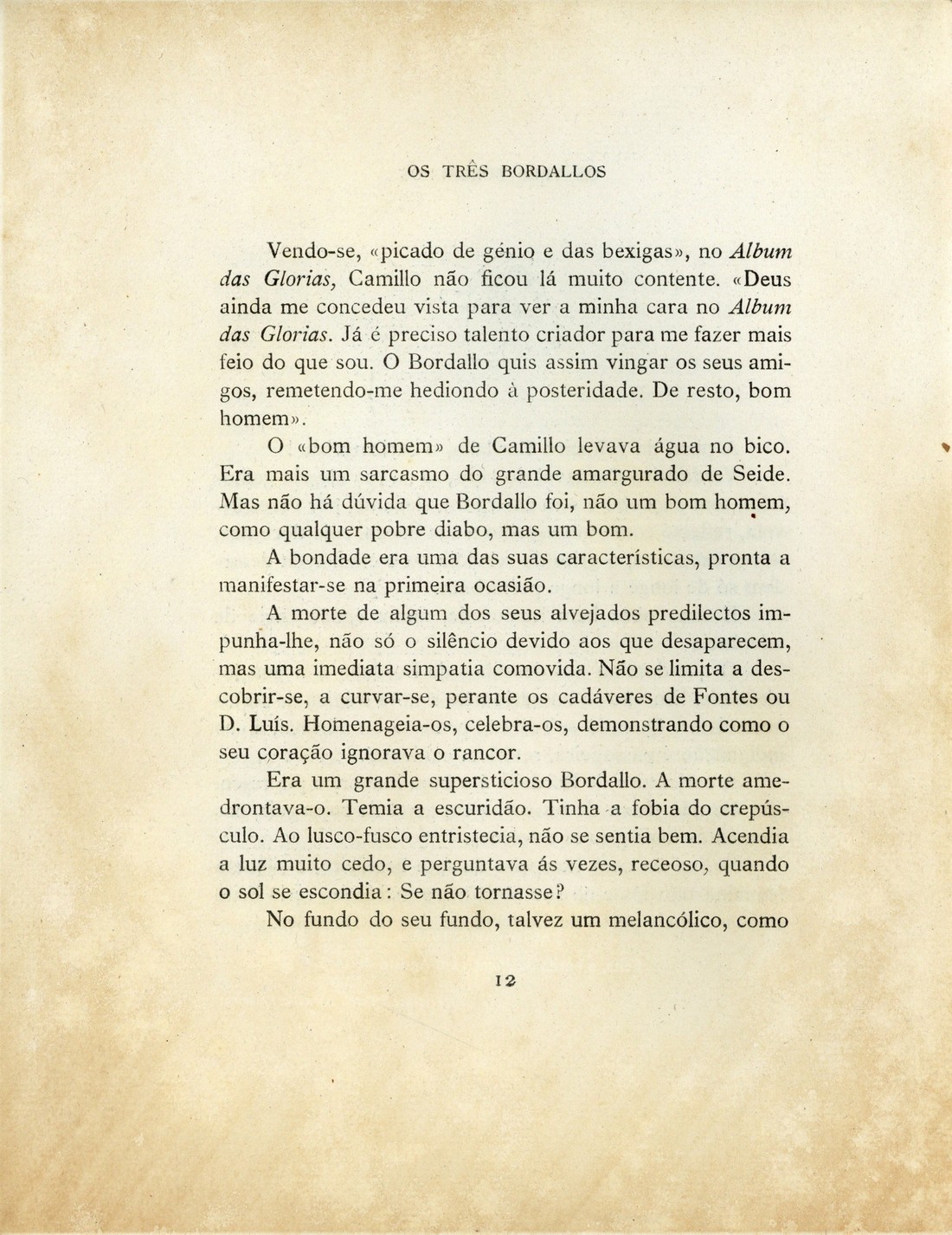 Os três Bordallos : conferência Sumário capa verso anterrosto De Manoel de Sousa Pinto branca Raphael Bordallo Pinheiro [ilustração] rosto verso dedicatória verso Os três Bordallos verso contracapa 0007 0008 0009 0010 0011 0012 Auto-caricatura [ilustração] 0013 0014 0015 0016 0017 0018 Perfumador árabe em faiança das Caldas [ilustração] 0019 0020 0021 0022 Busto de mulher [ilustração] 0023 0024 0025 0026 0027 0028 Projecto para pórtico da Exposição Colombiana [ilustração] 0029 0030 0031 0032 0033 0034 Figurino para a revista "Formigas e formigueiros" [ilustração] 0035 0036 0037 0038 0039 0040 | Sumário > Os três Bordallos > 0012 |