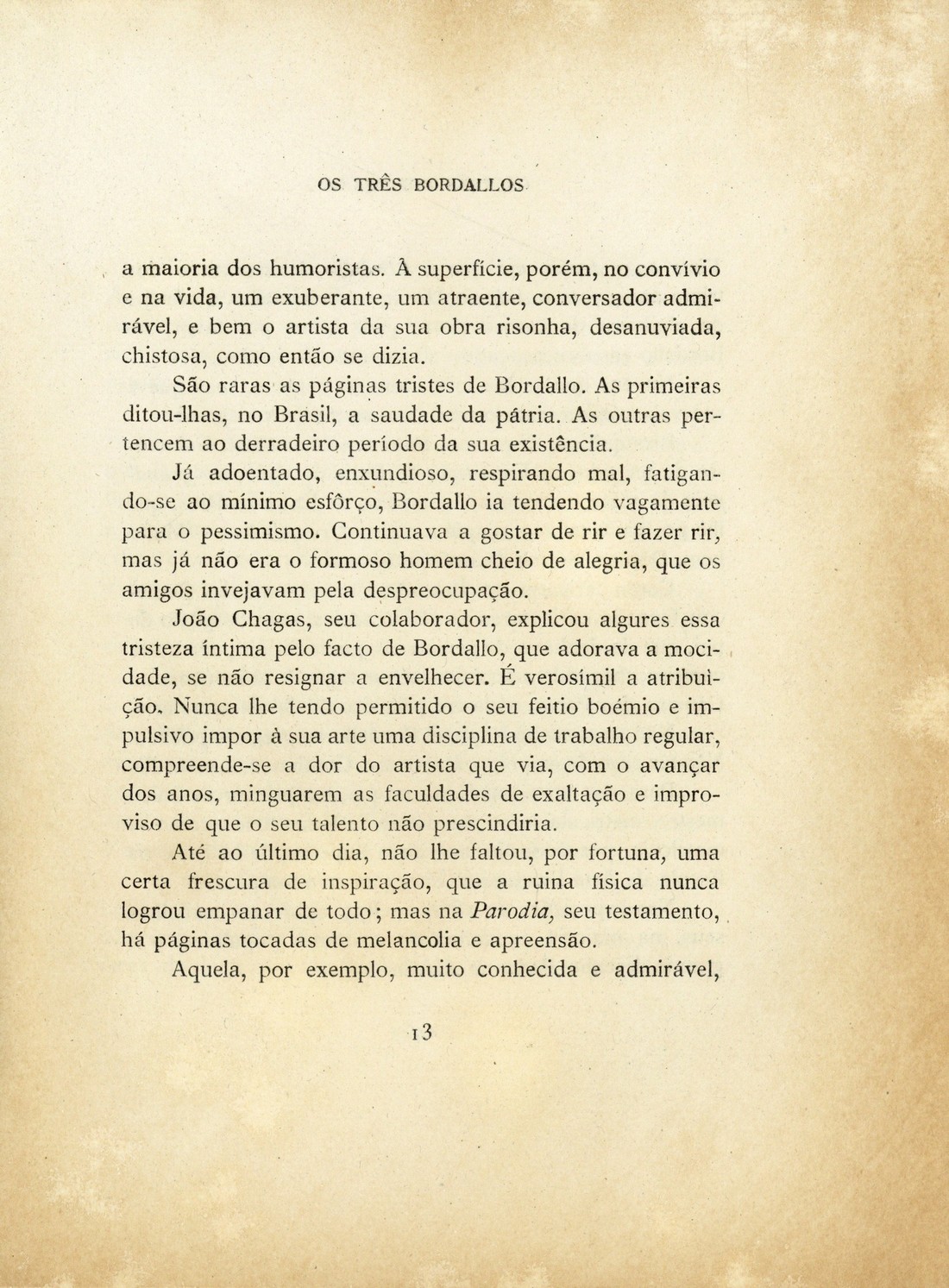 Os três Bordallos : conferência Sumário capa verso anterrosto De Manoel de Sousa Pinto branca Raphael Bordallo Pinheiro [ilustração] rosto verso dedicatória verso Os três Bordallos verso contracapa 0007 0008 0009 0010 0011 0012 Auto-caricatura [ilustração] 0013 0014 0015 0016 0017 0018 Perfumador árabe em faiança das Caldas [ilustração] 0019 0020 0021 0022 Busto de mulher [ilustração] 0023 0024 0025 0026 0027 0028 Projecto para pórtico da Exposição Colombiana [ilustração] 0029 0030 0031 0032 0033 0034 Figurino para a revista "Formigas e formigueiros" [ilustração] 0035 0036 0037 0038 0039 0040 | Sumário > Os três Bordallos > 0013 |