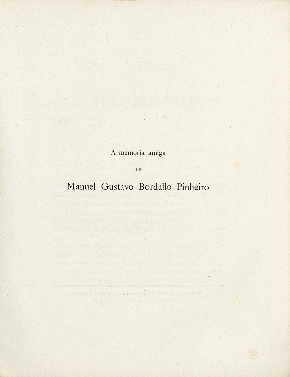 Os três Bordallos : conferência Sumário capa verso anterrosto De Manoel de Sousa Pinto branca Raphael Bordallo Pinheiro [ilustração] rosto verso dedicatória verso Os três Bordallos verso contracapa 0007 0008 0009 0010 0011 0012 Auto-caricatura [ilustração] 0013 0014 0015 0016 0017 0018 Perfumador árabe em faiança das Caldas [ilustração] 0019 0020 0021 0022 Busto de mulher [ilustração] 0023 0024 0025 0026 0027 0028 Projecto para pórtico da Exposição Colombiana [ilustração] 0029 0030 0031 0032 0033 0034 Figurino para a revista "Formigas e formigueiros" [ilustração] 0035 0036 0037 0038 0039 0040 | Sumário > dedicatória |